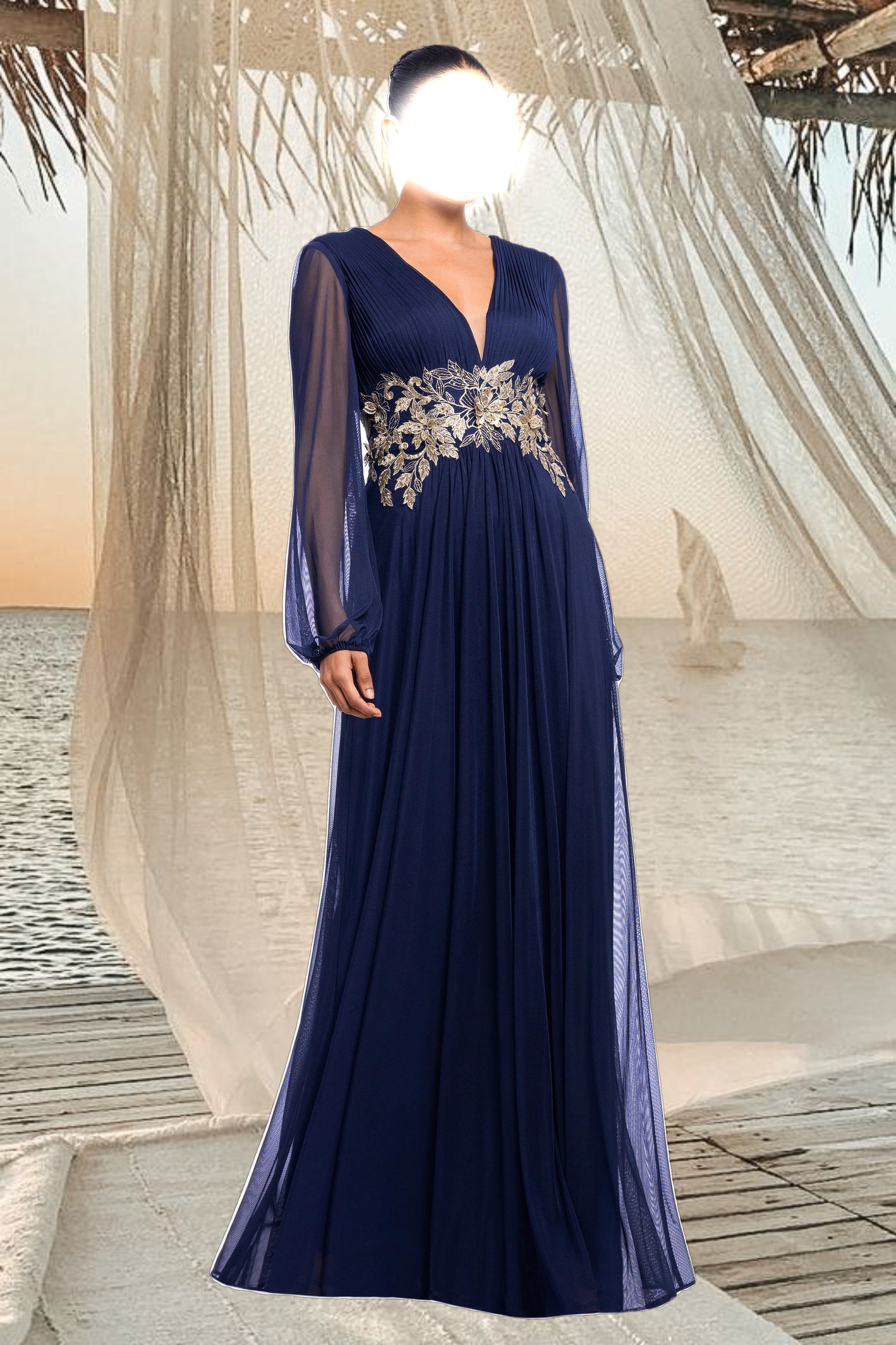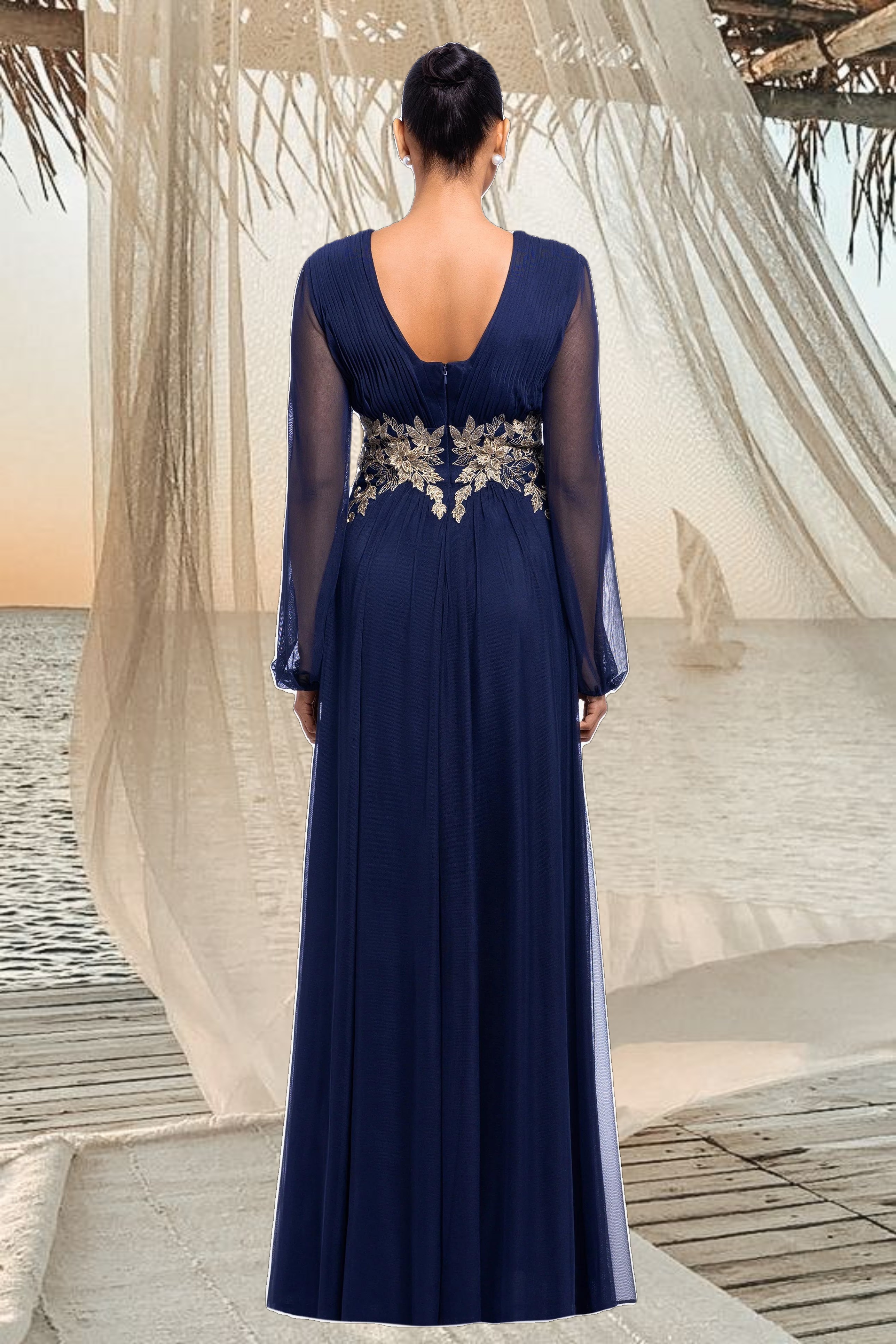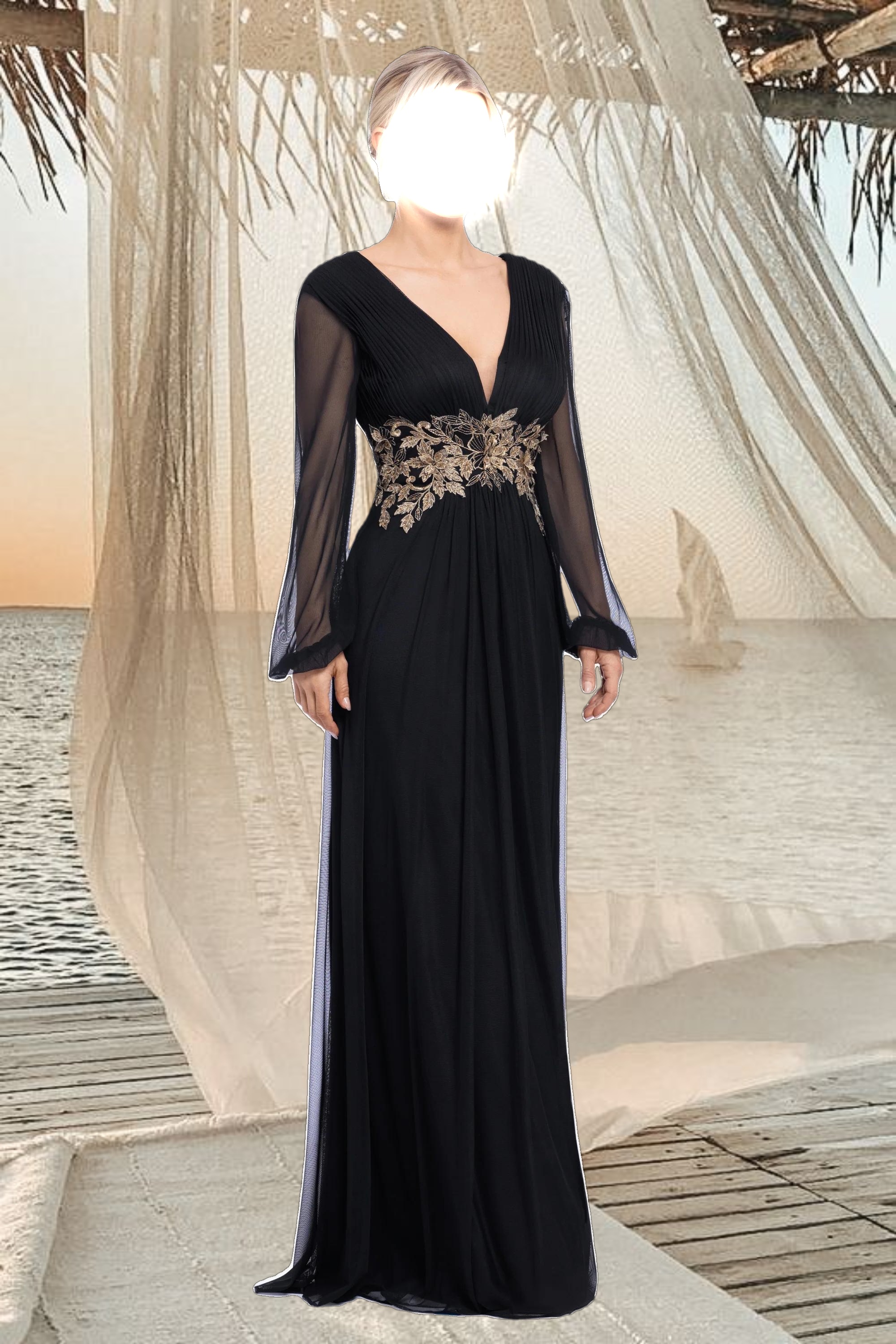 The "Rebecca" Long Sleeve Mesh Floor Length Gown offers a stunning blend of elegance and modern style for formal occasions. This dress features intricate mesh detailing and a figure-flattering silhouette, making it a standout choice for special events. Its floor-length design exudes sophistication, perfect for weddings and gala evenings.