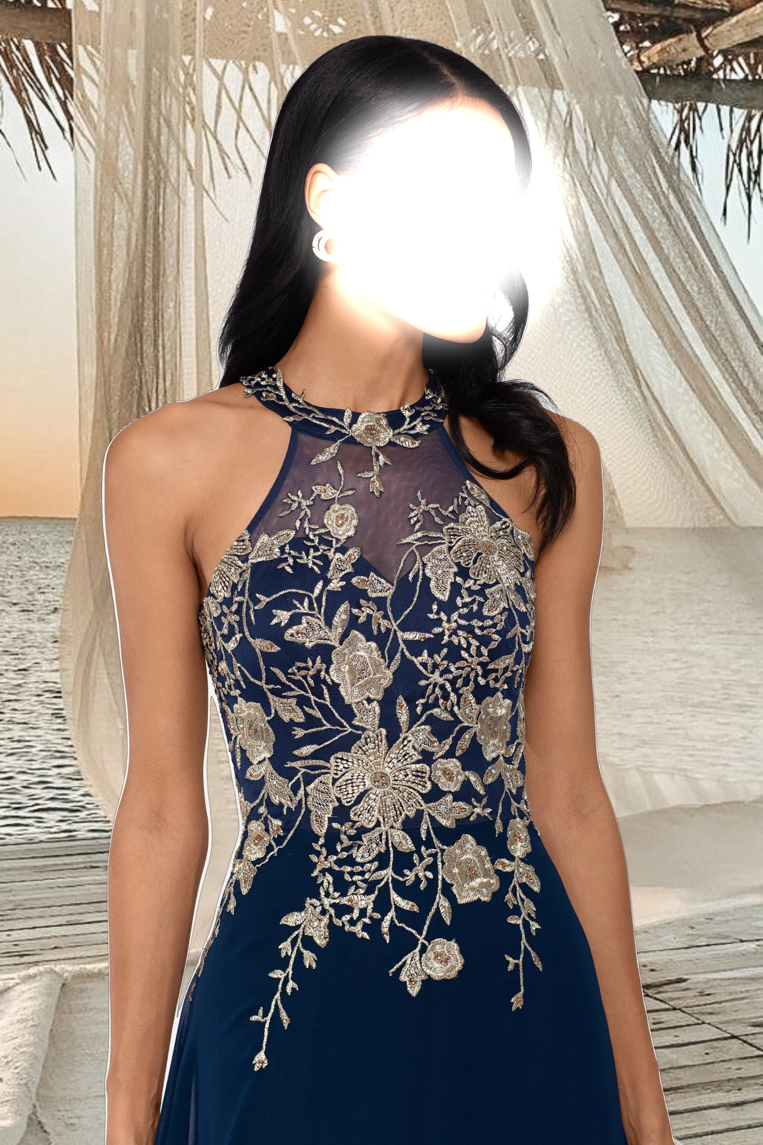 "Anya" Long Jersey Knit Lace Bodice Gown