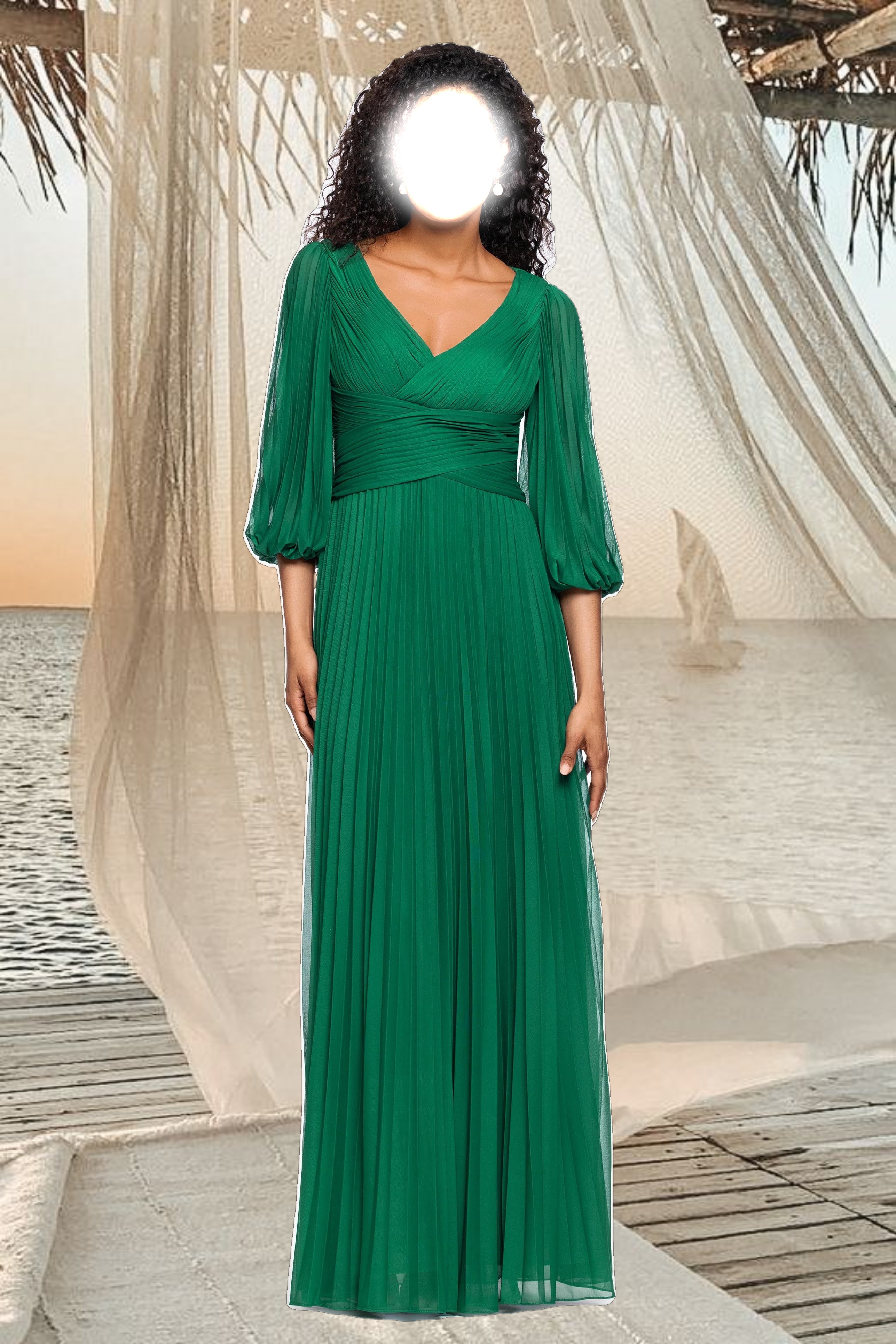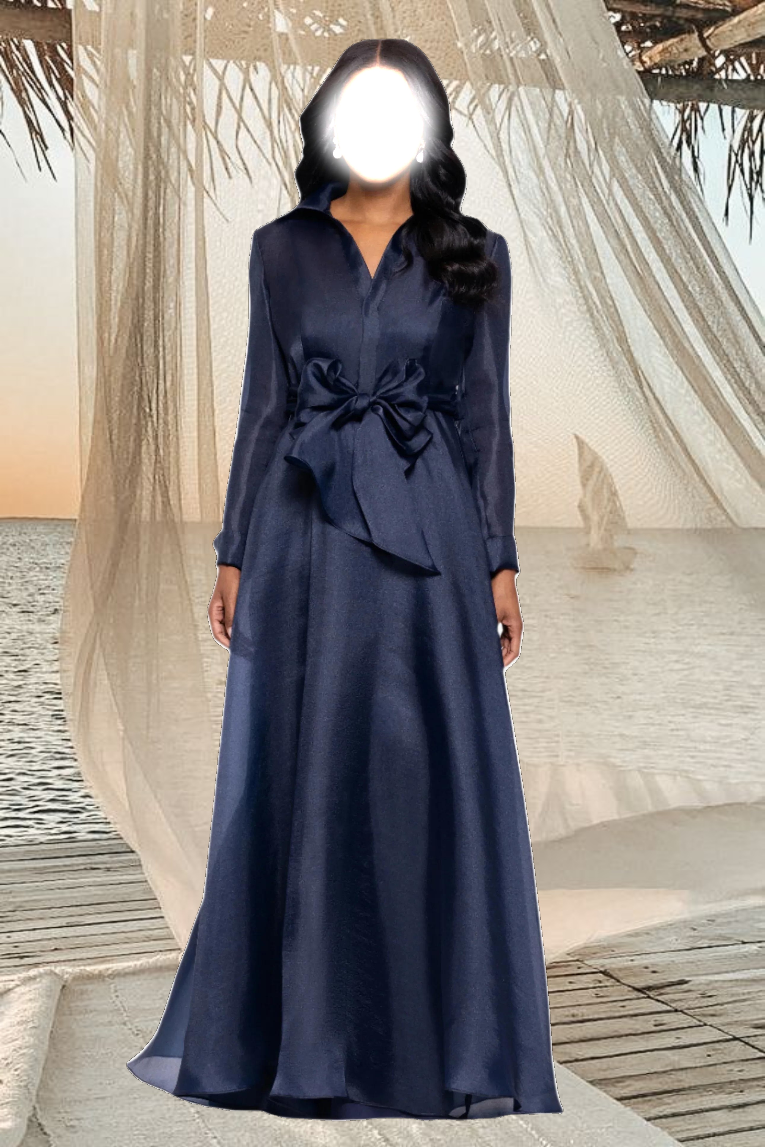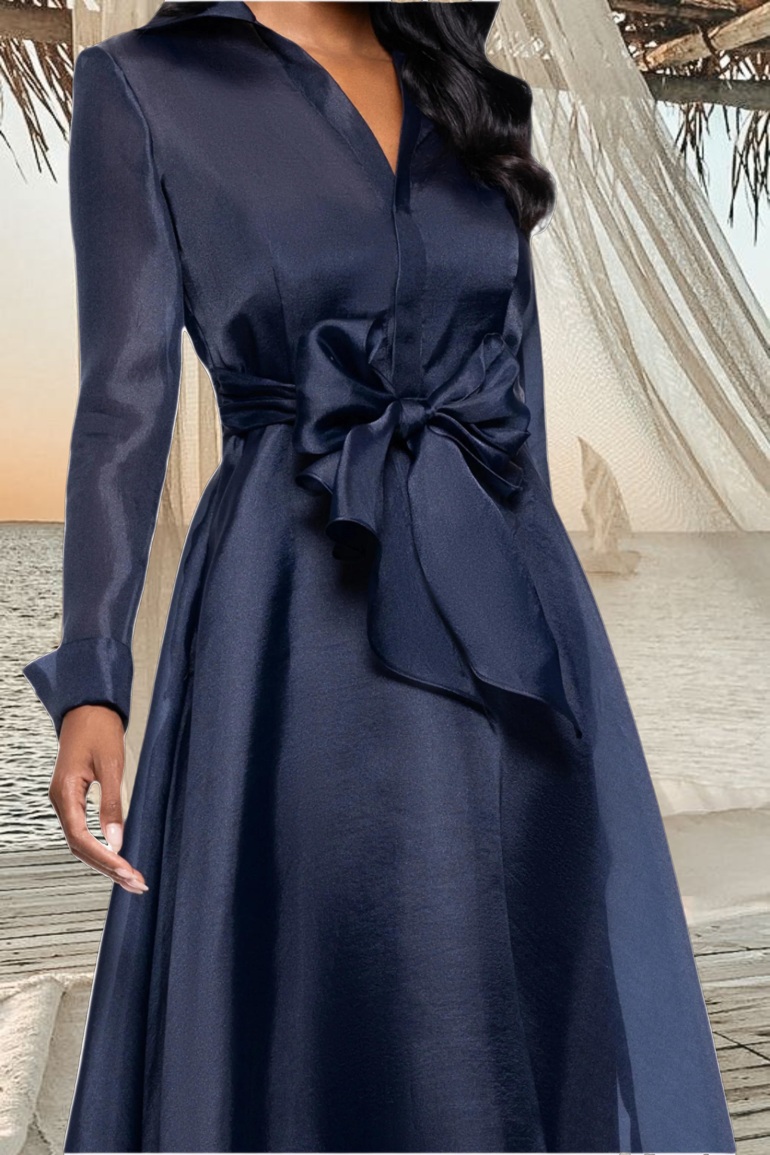"Athena" Organza Long Sleeve Collared Floor Length Dress
