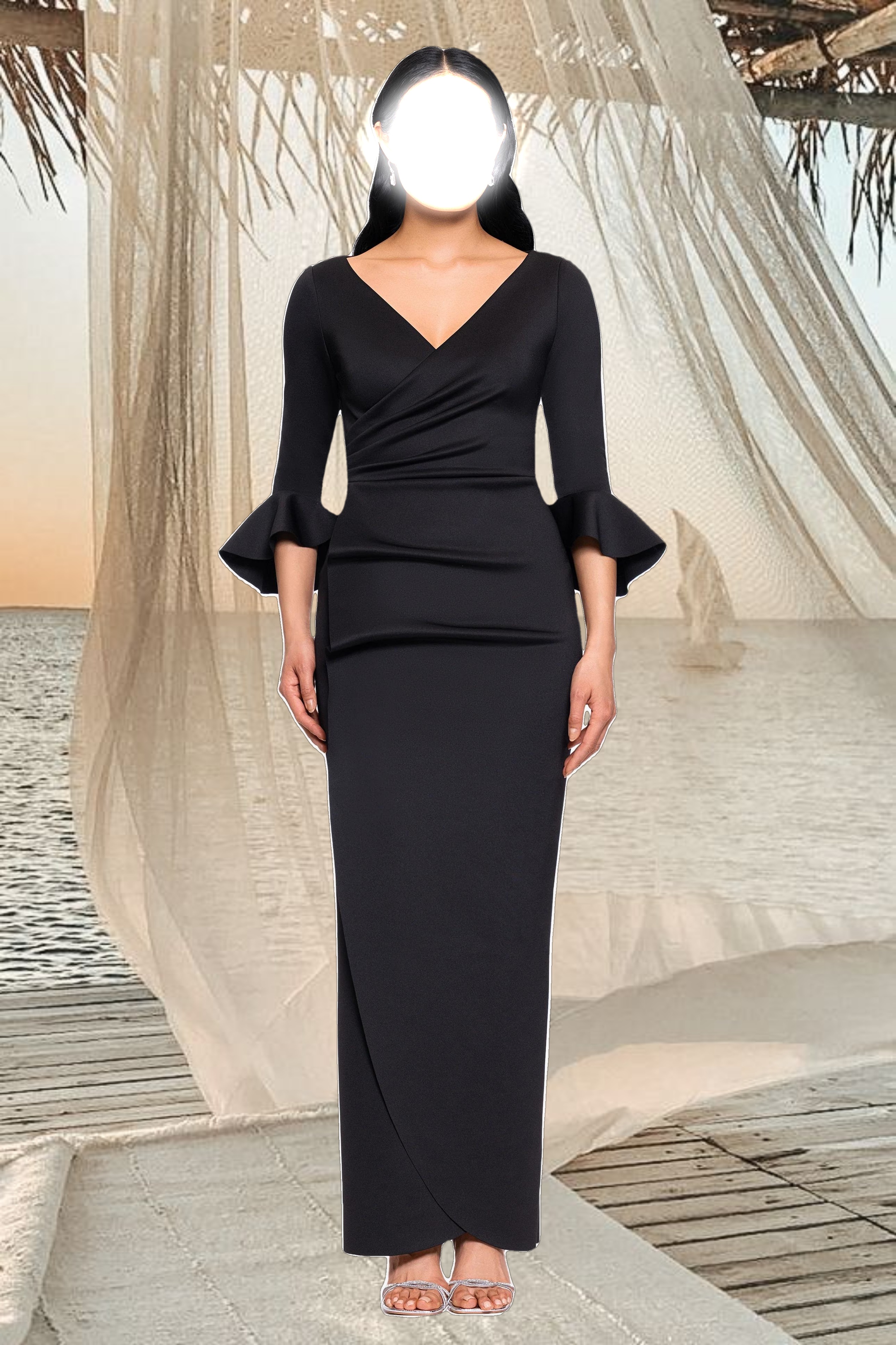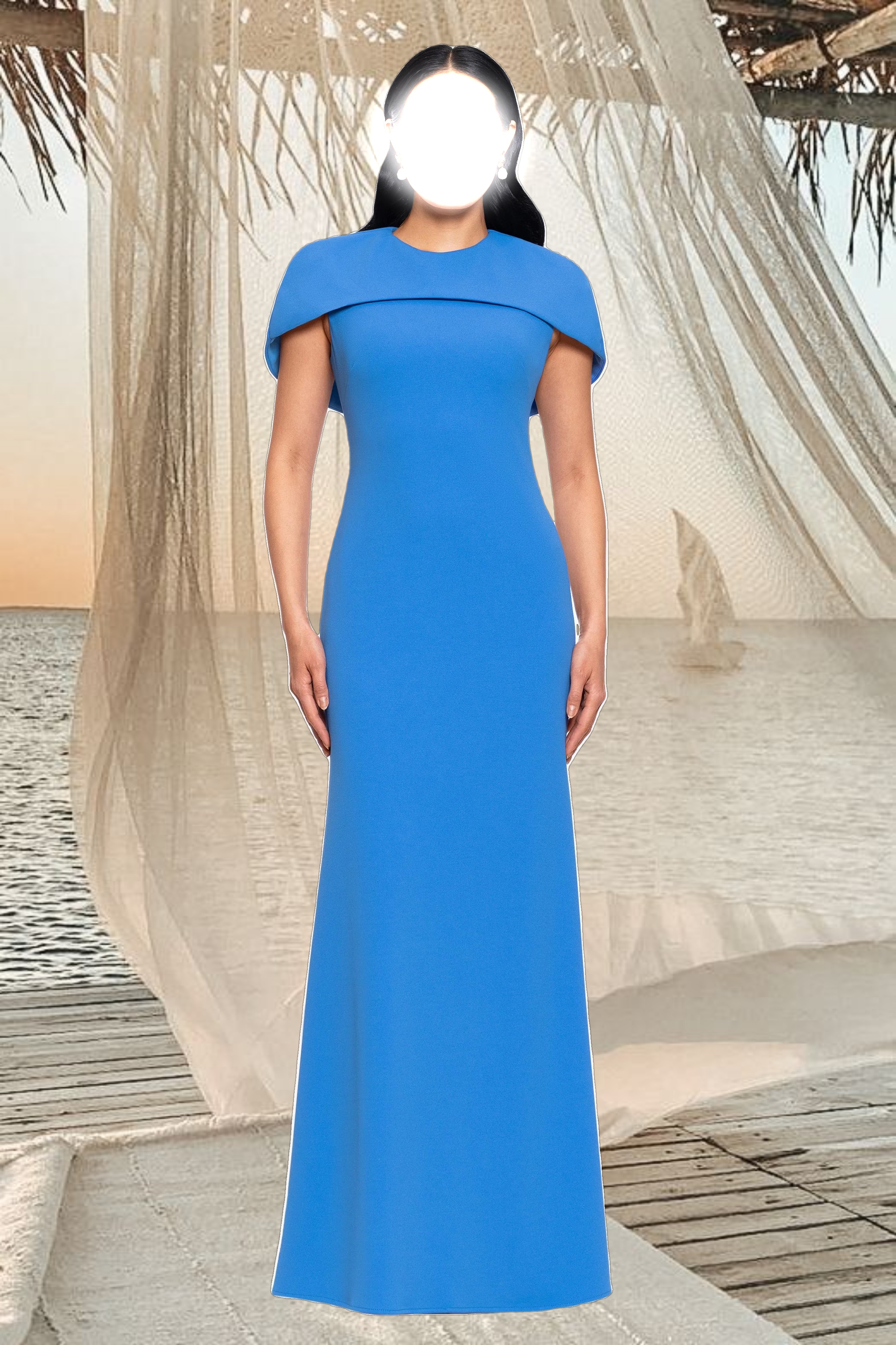 "Shanice" Scuba Crepe Short Cape Floor Length Dress