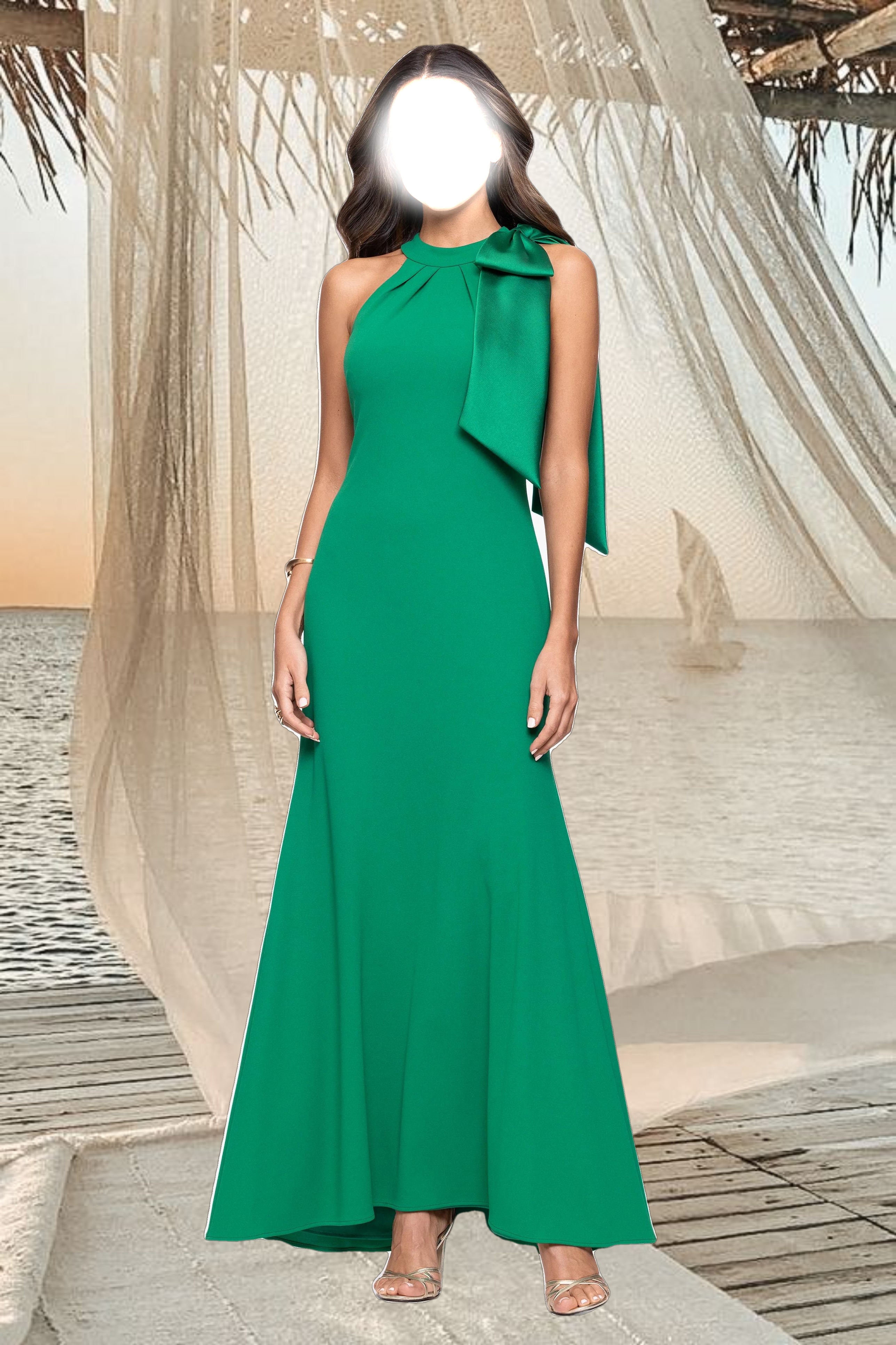 "Laney" Long Scuba Crepe Dress With Satin Bow