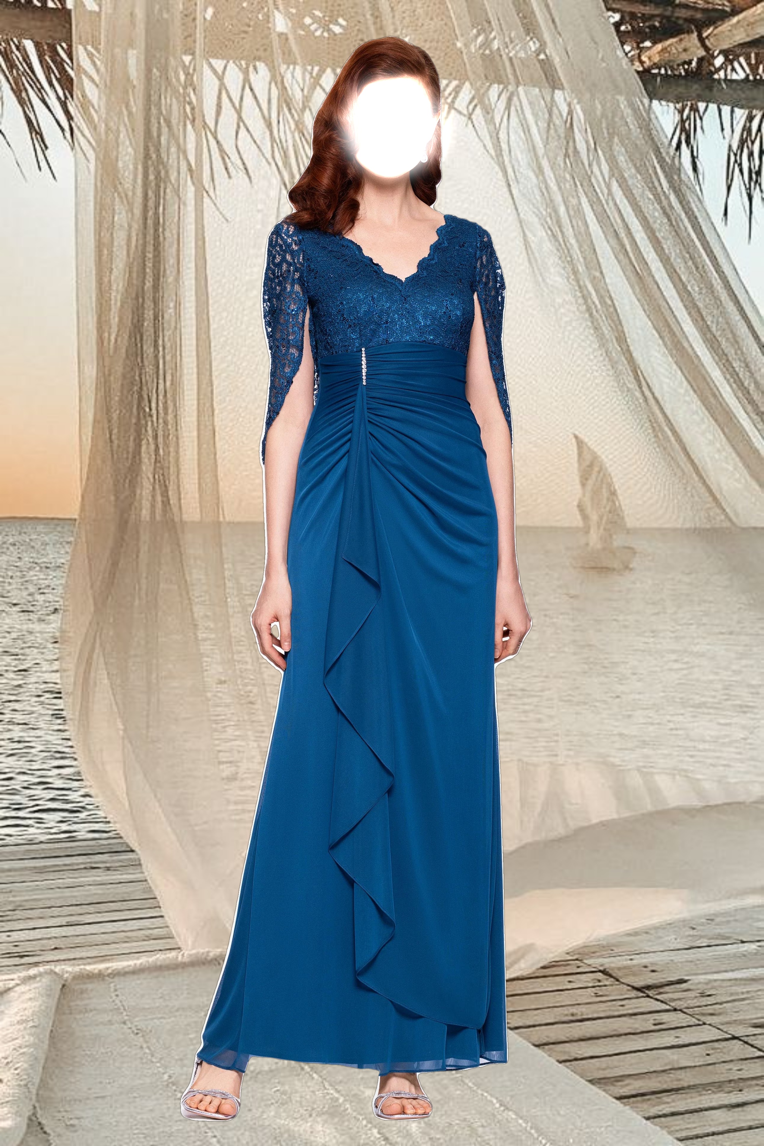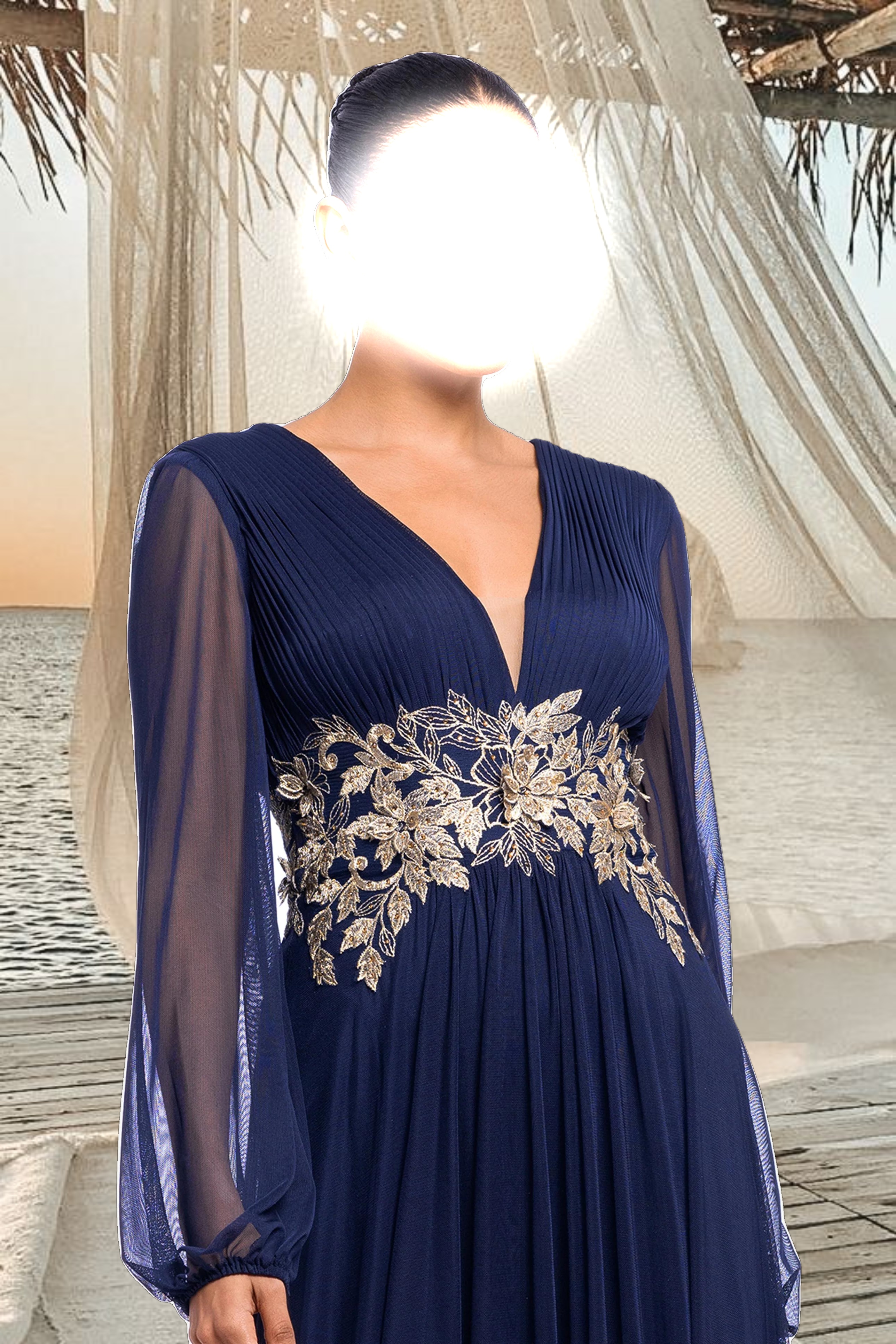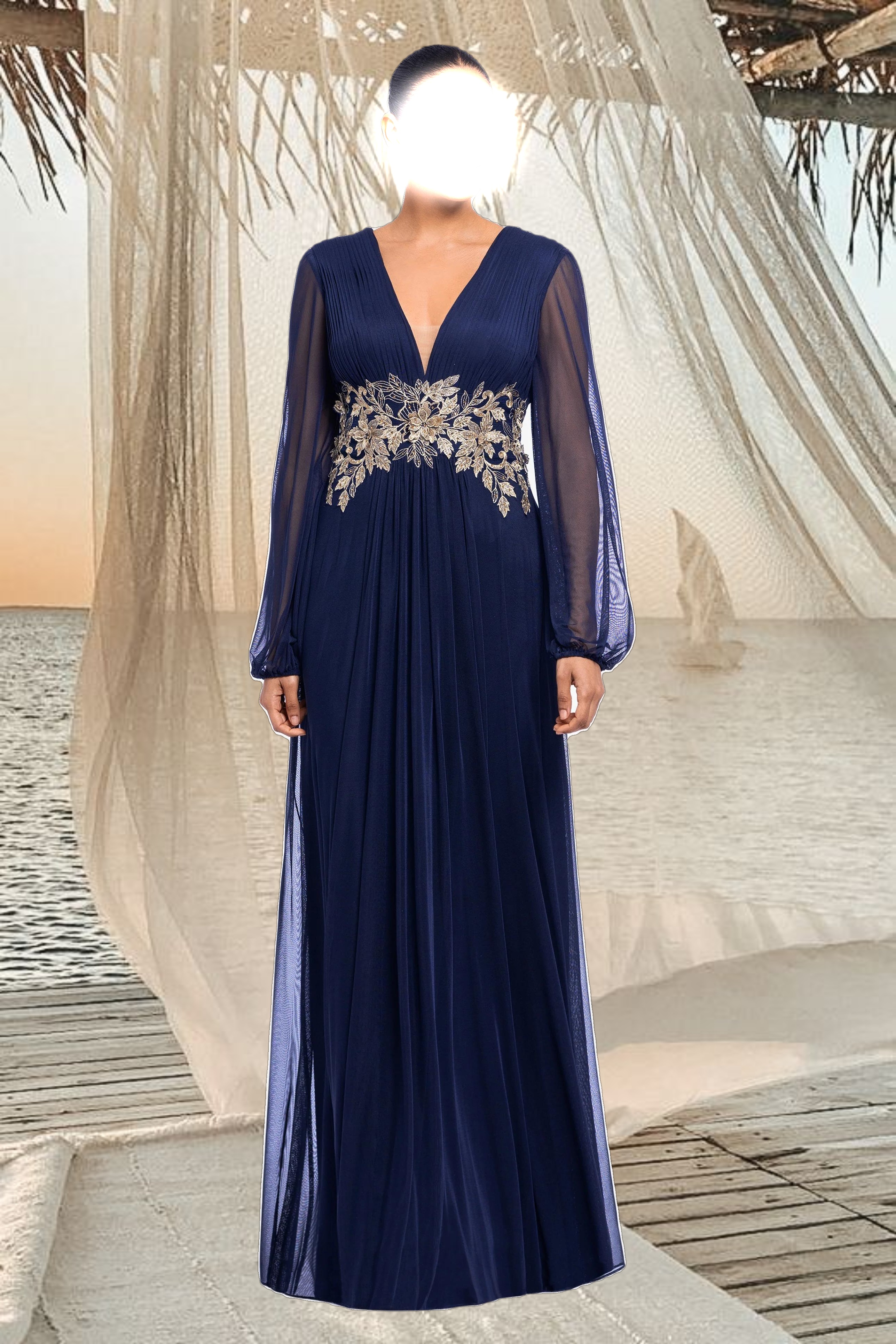 "Sammy" Chiffon Long Sleeve Floor Length Dress
