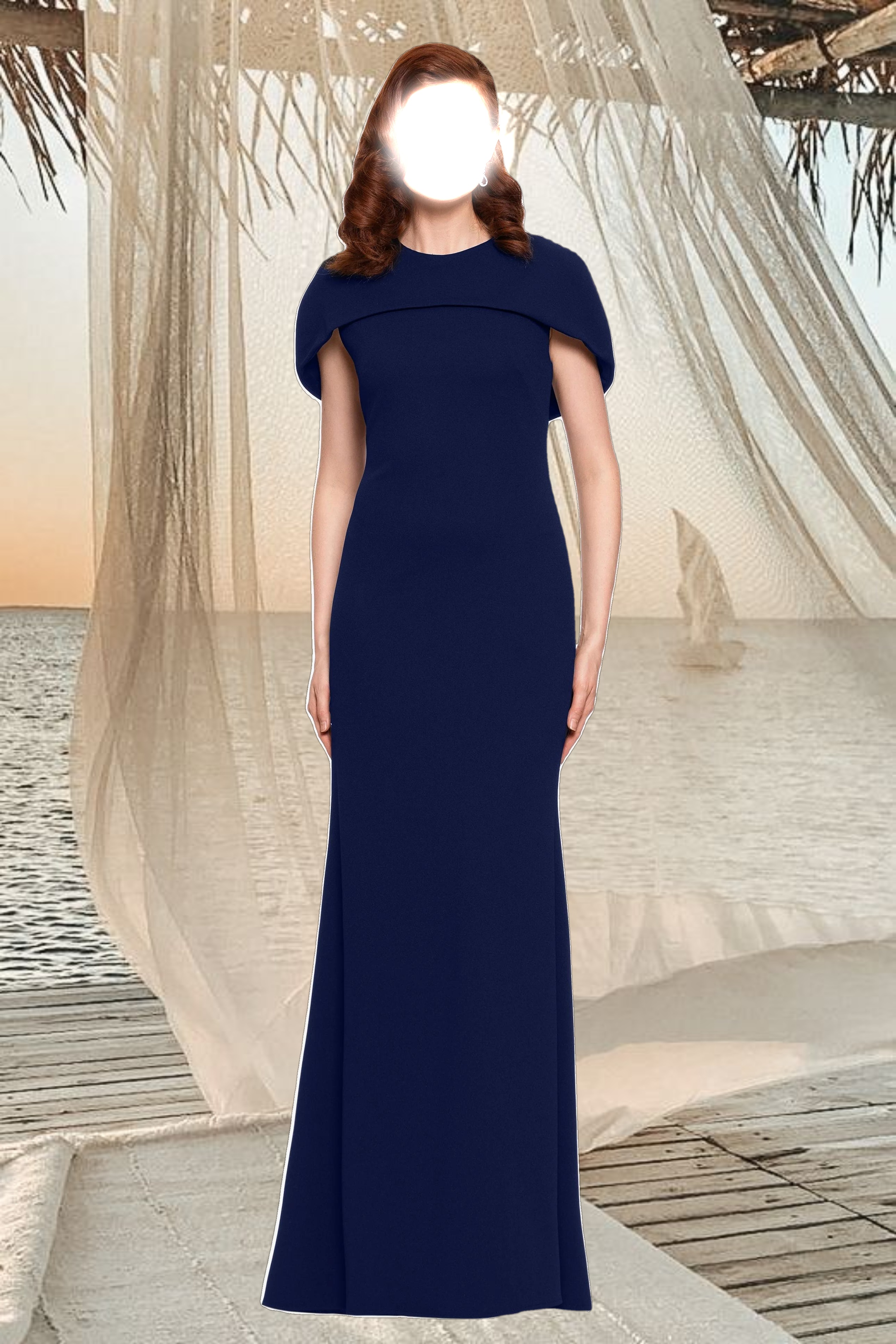 "Shanice" Scuba Crepe Short Cape Floor Length Dress