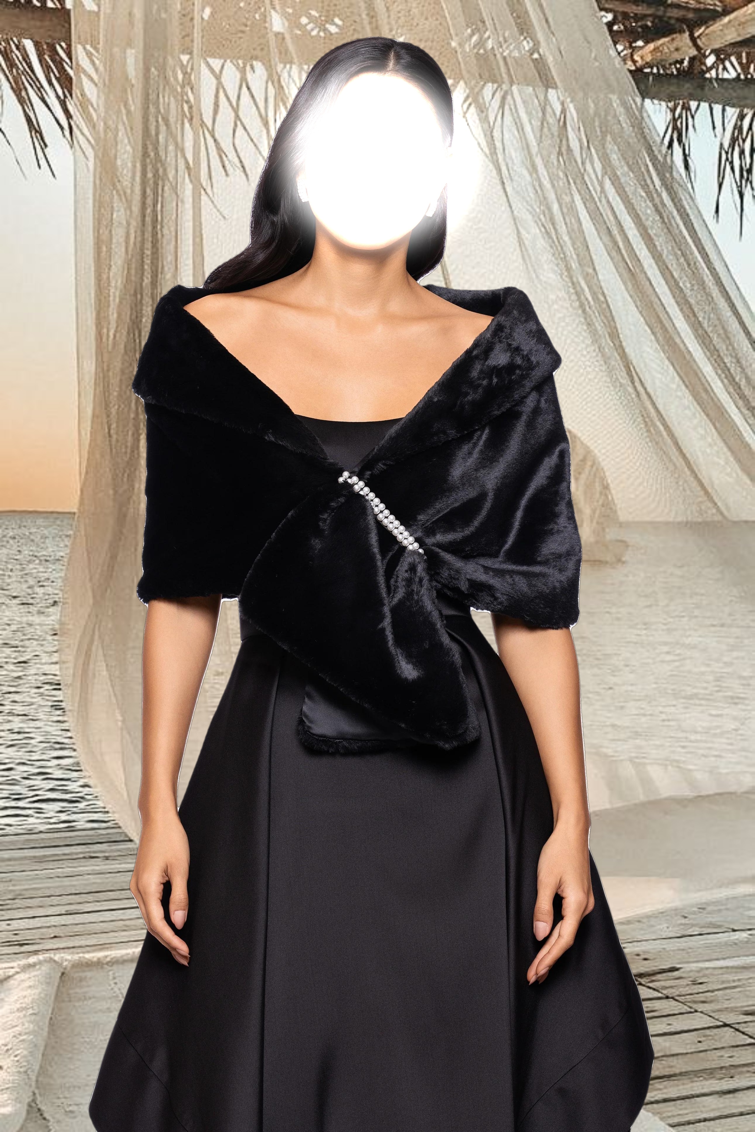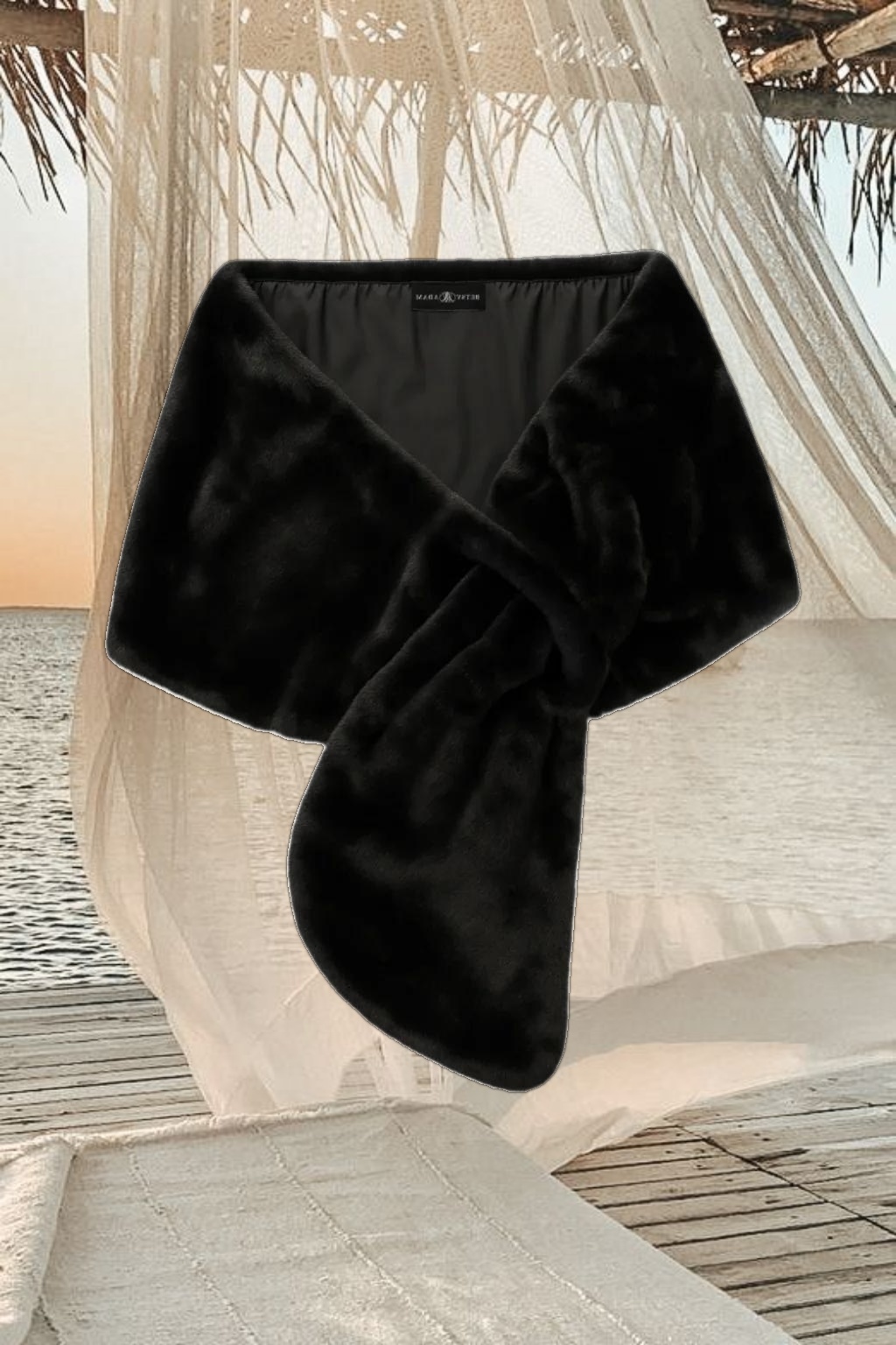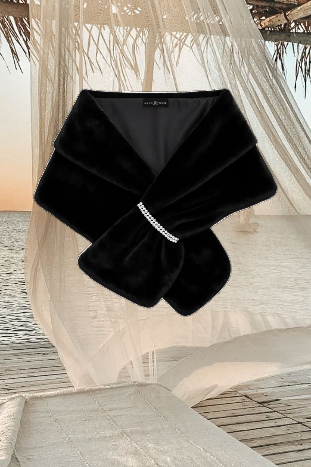 "Betty" Faux Fur Pearl Trim Shawl Wrap