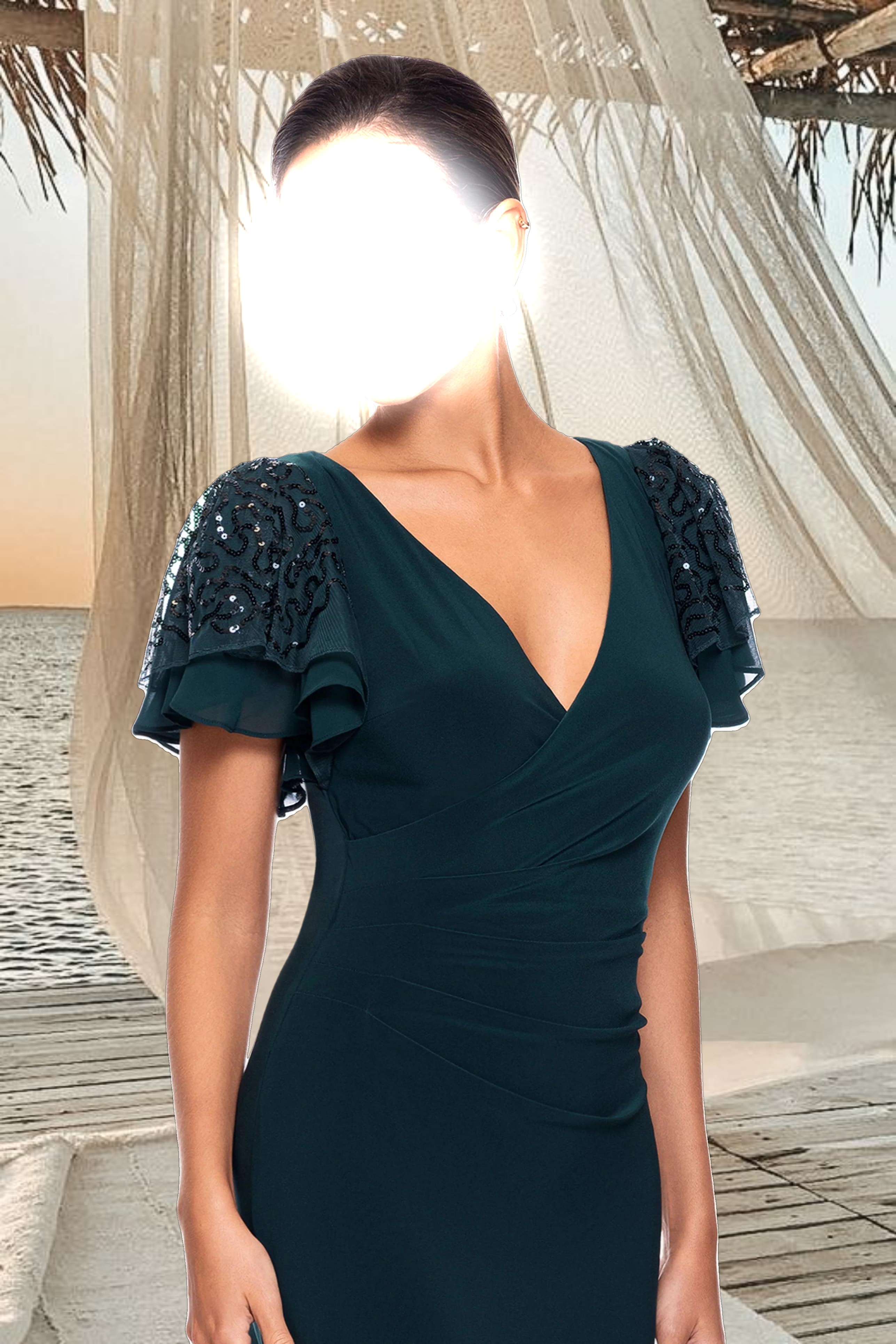 "Jennifer" Long Jersey Knit Sequin Sleeve Dress