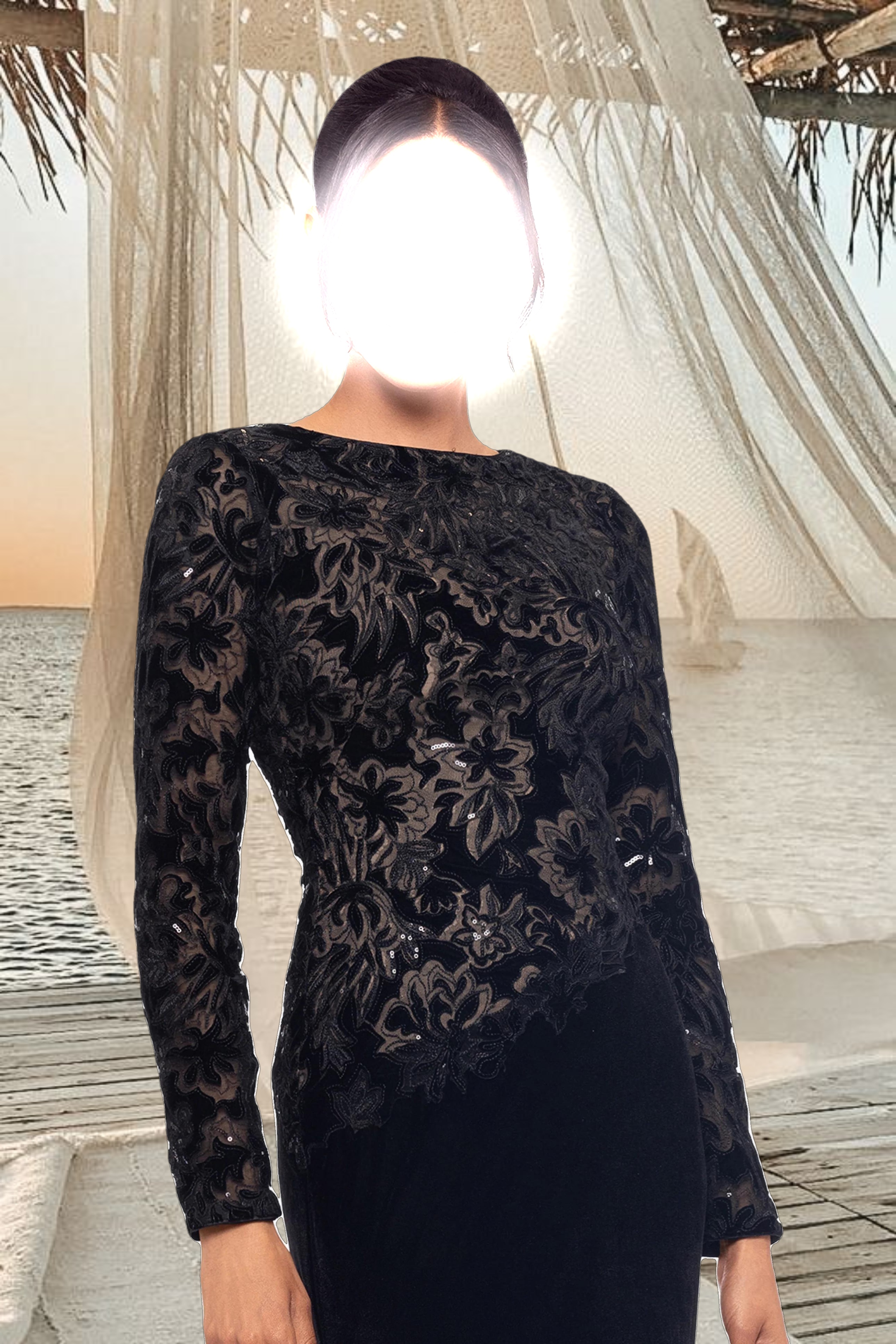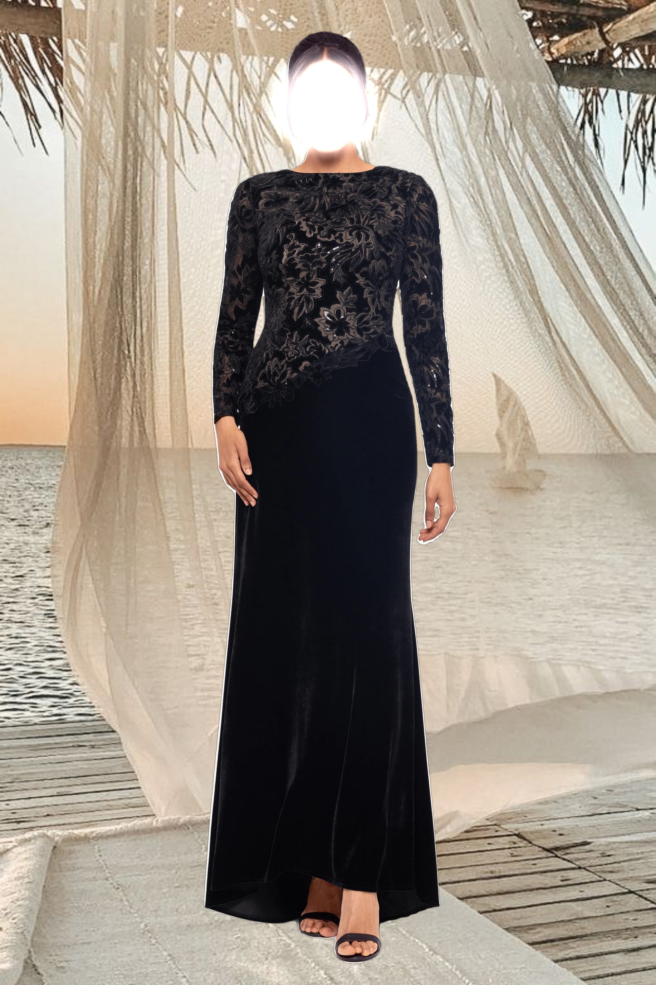 "Alena" Floor Length Sequin and Velvet Long Sleeve Dress