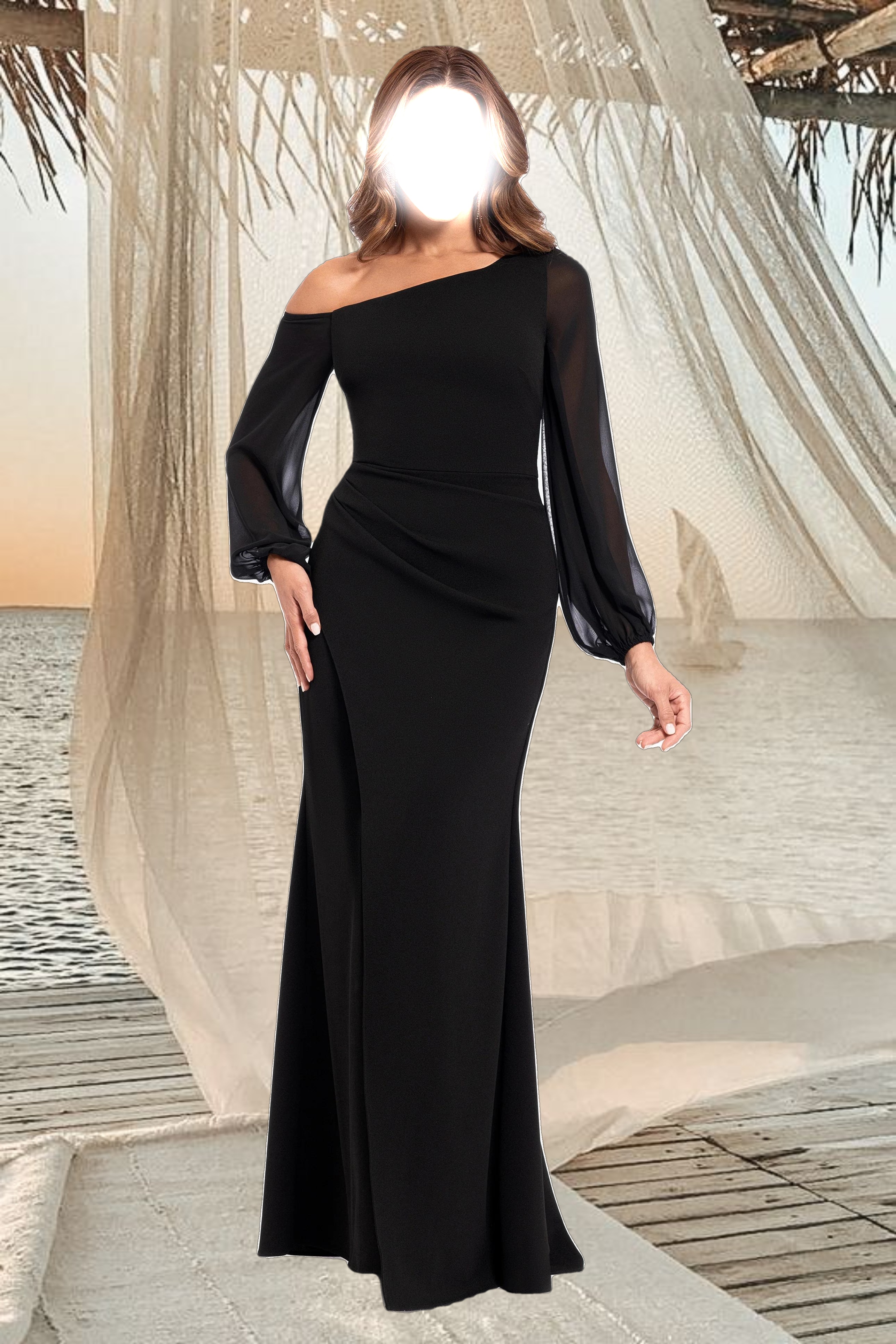"Donna" Long Off the Shoulder Illusion Sleeve Dress