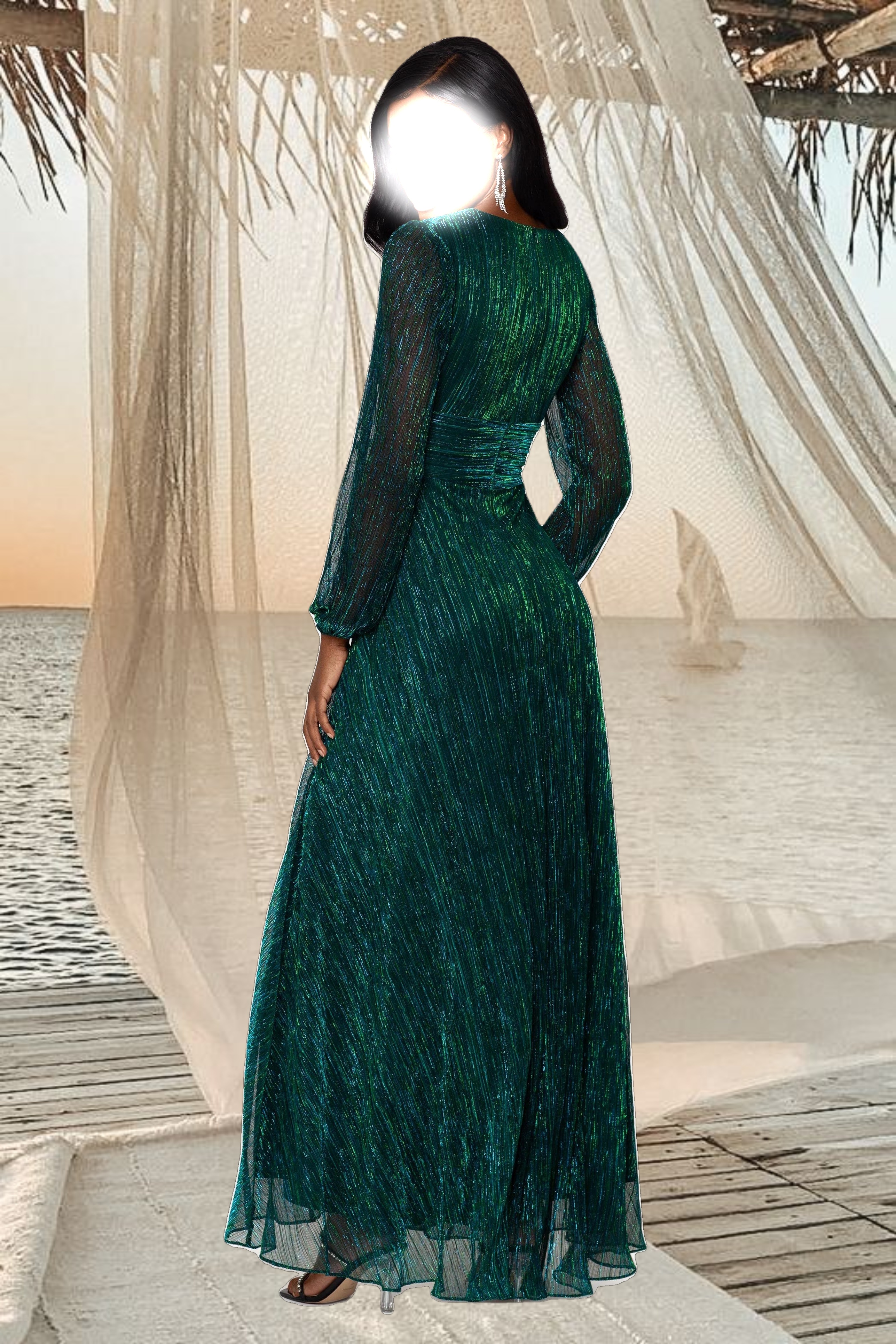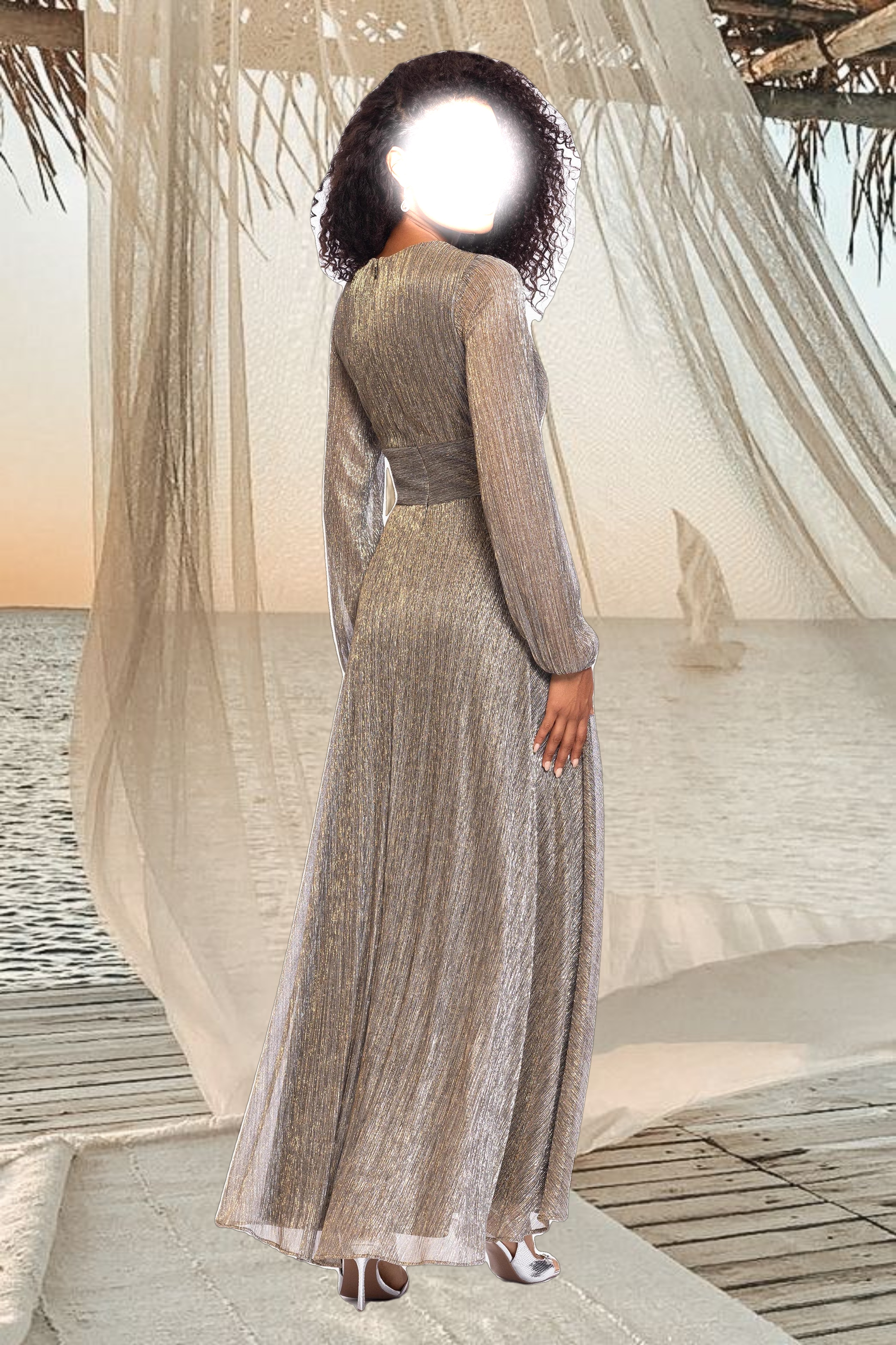 Get ready to shine in our "Alexa" Long Sleeve Metallic Knit Dress! Made of a stunning metallic knit material, this dress features a hidden back zipper and illusion long sleeves for a sleek look. The v-neck and waist band add extra detail, making you stand out from the crowd. Stay fully lined and looking fabulous all night long!