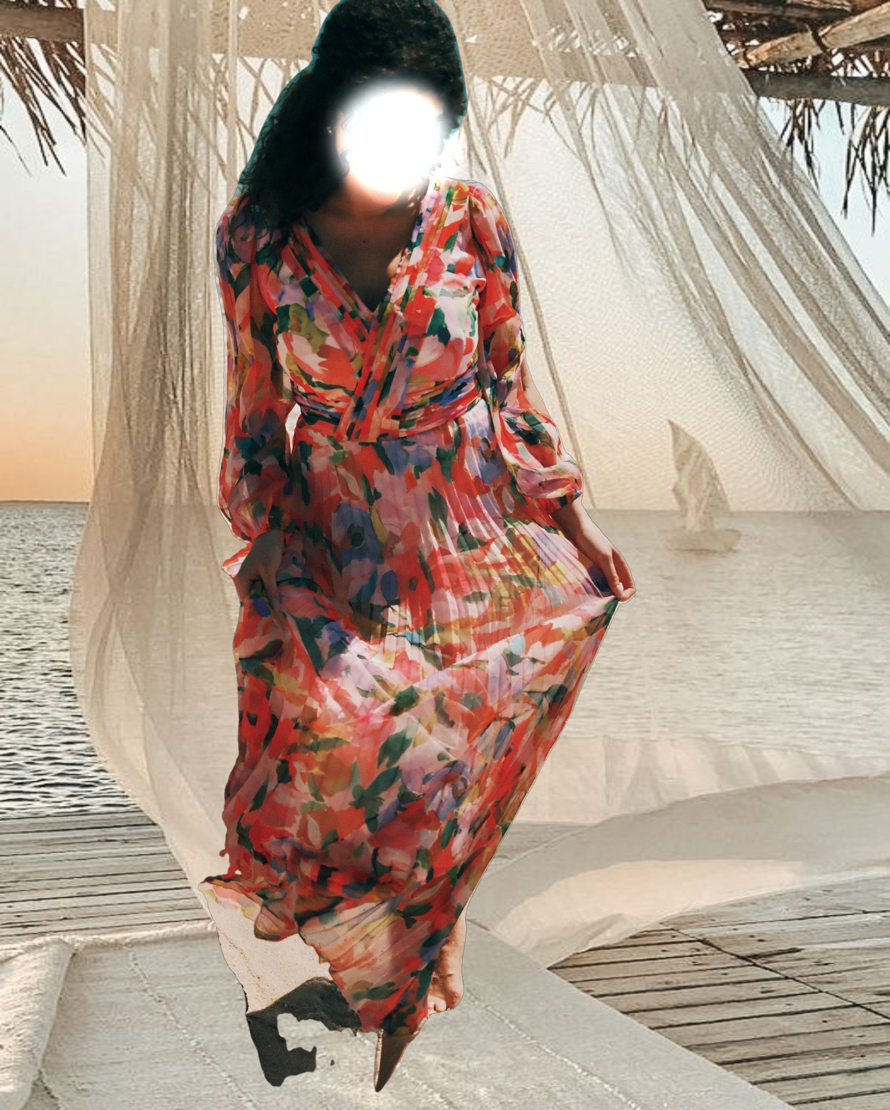 Home / Print / "Amber" Long Sleeve Chiffon Print Floor Length Dress