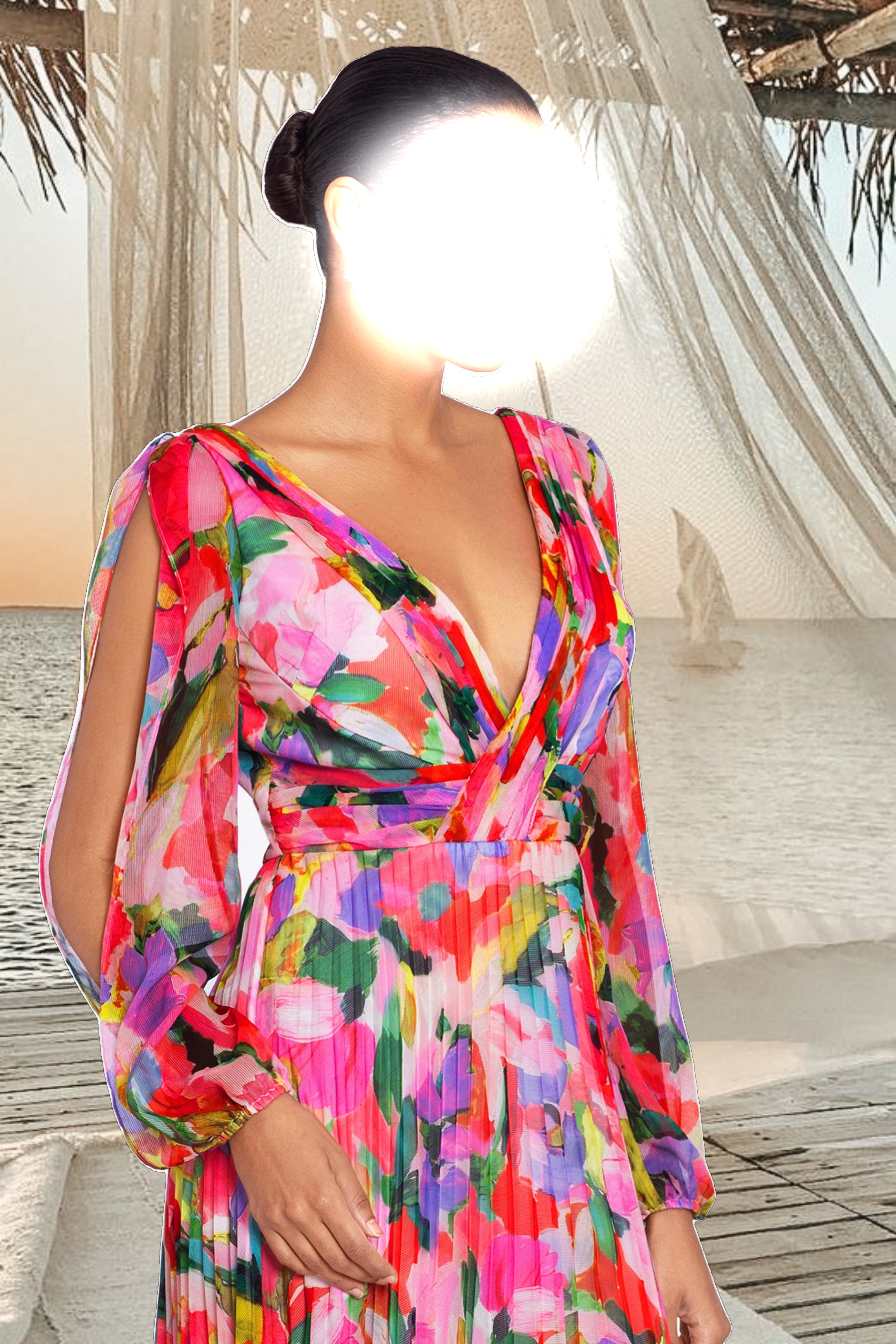 • Details: V-neck, Long Sleeves, Flowy Skirt