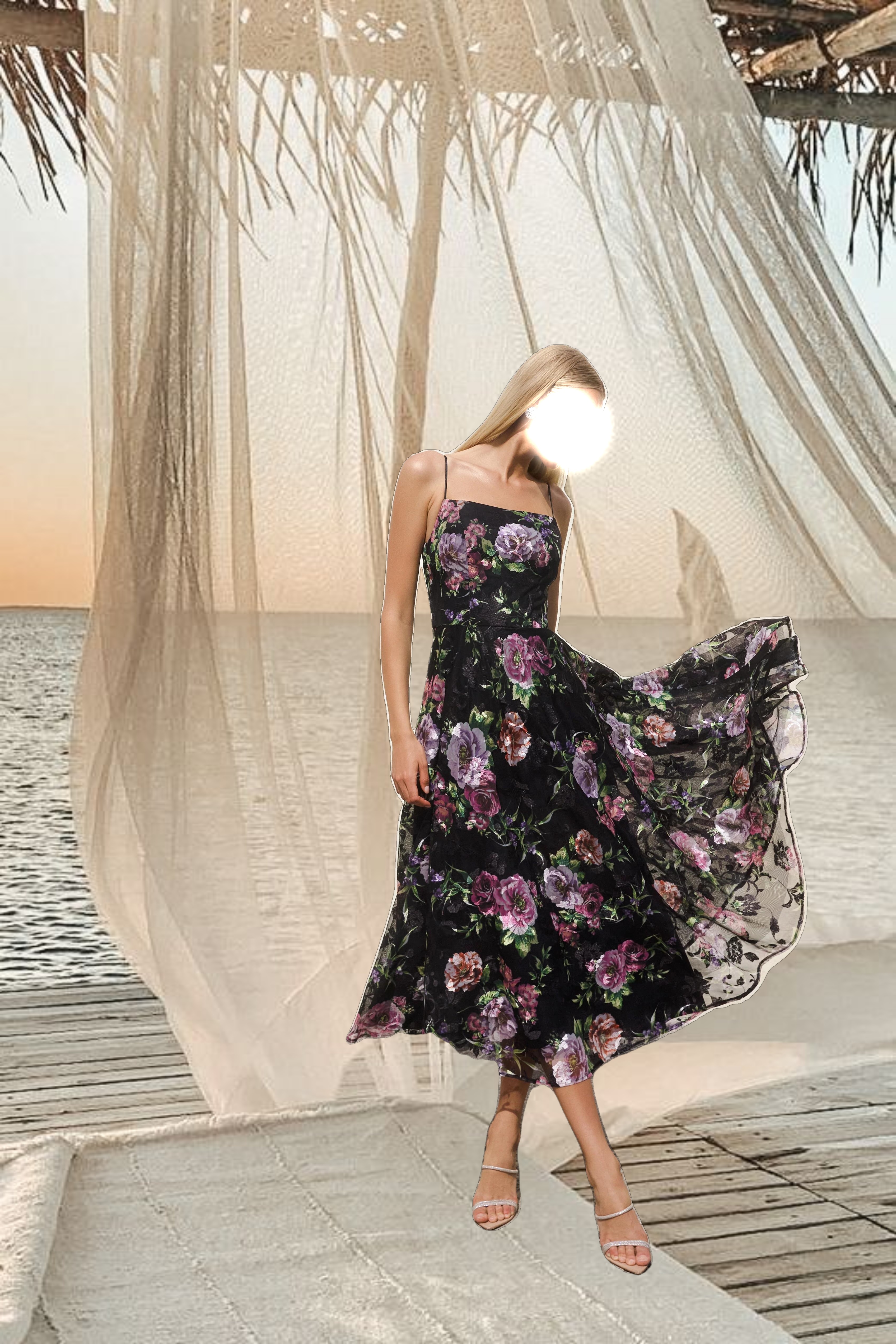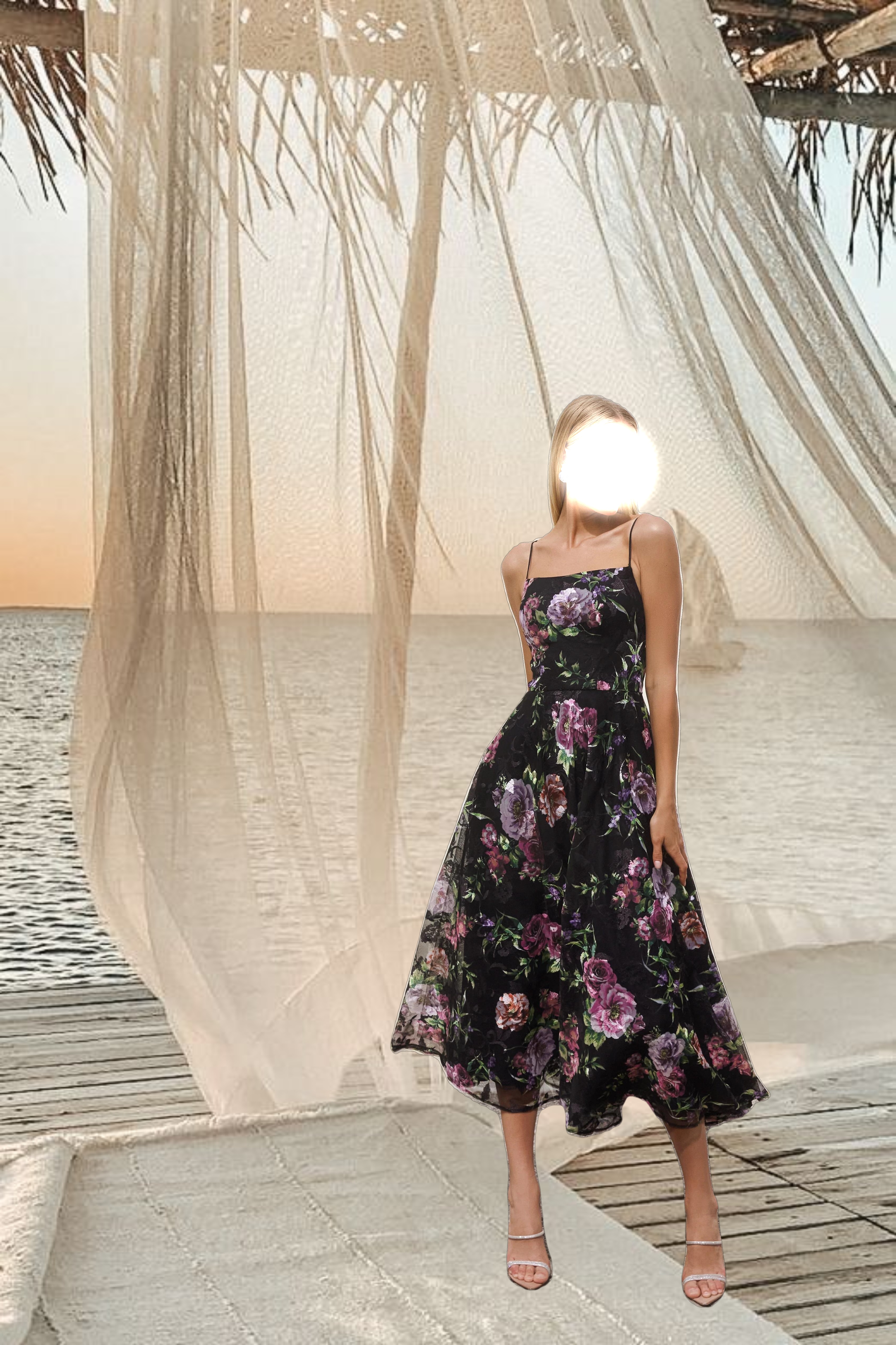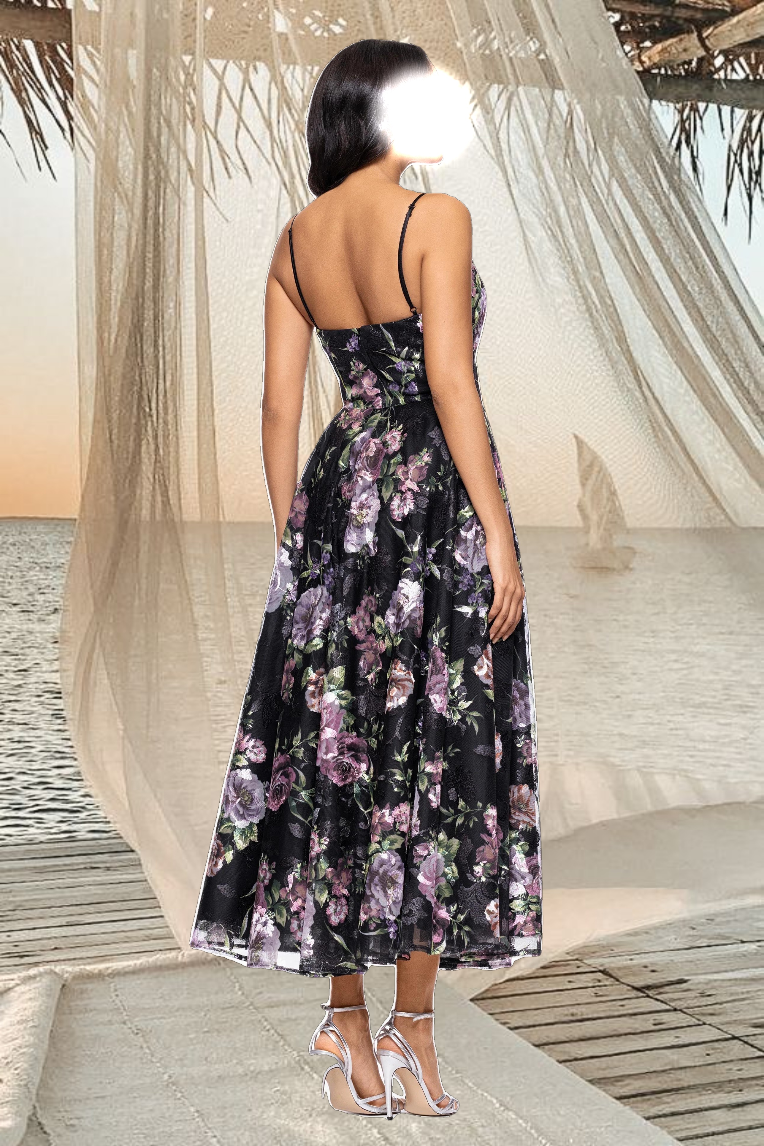 - Details: Straight Neck, A-Line Skirt, Spaghetti Strap, Midi