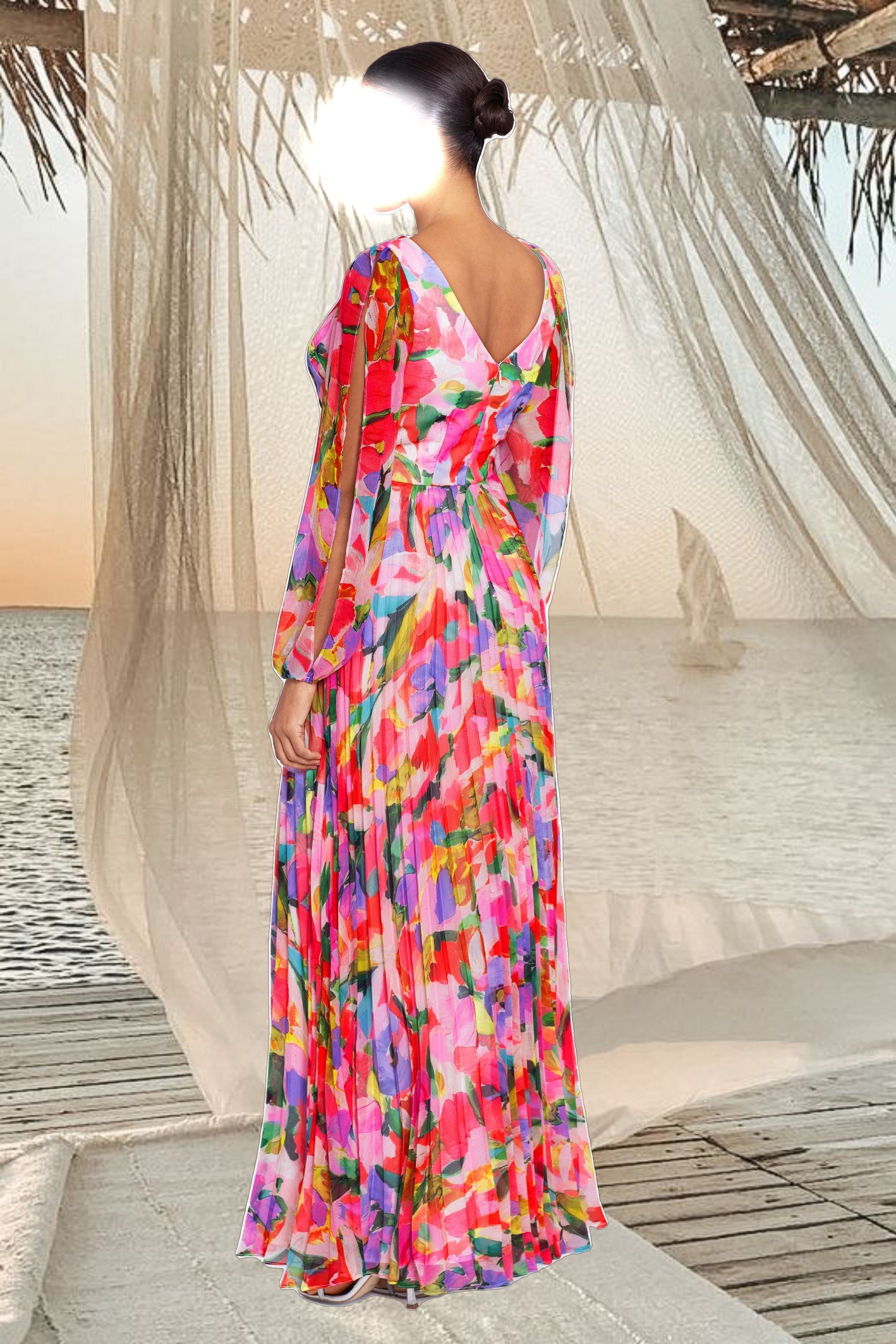 "Jaime" Print Chiffon V-Neck Floor Length Dress