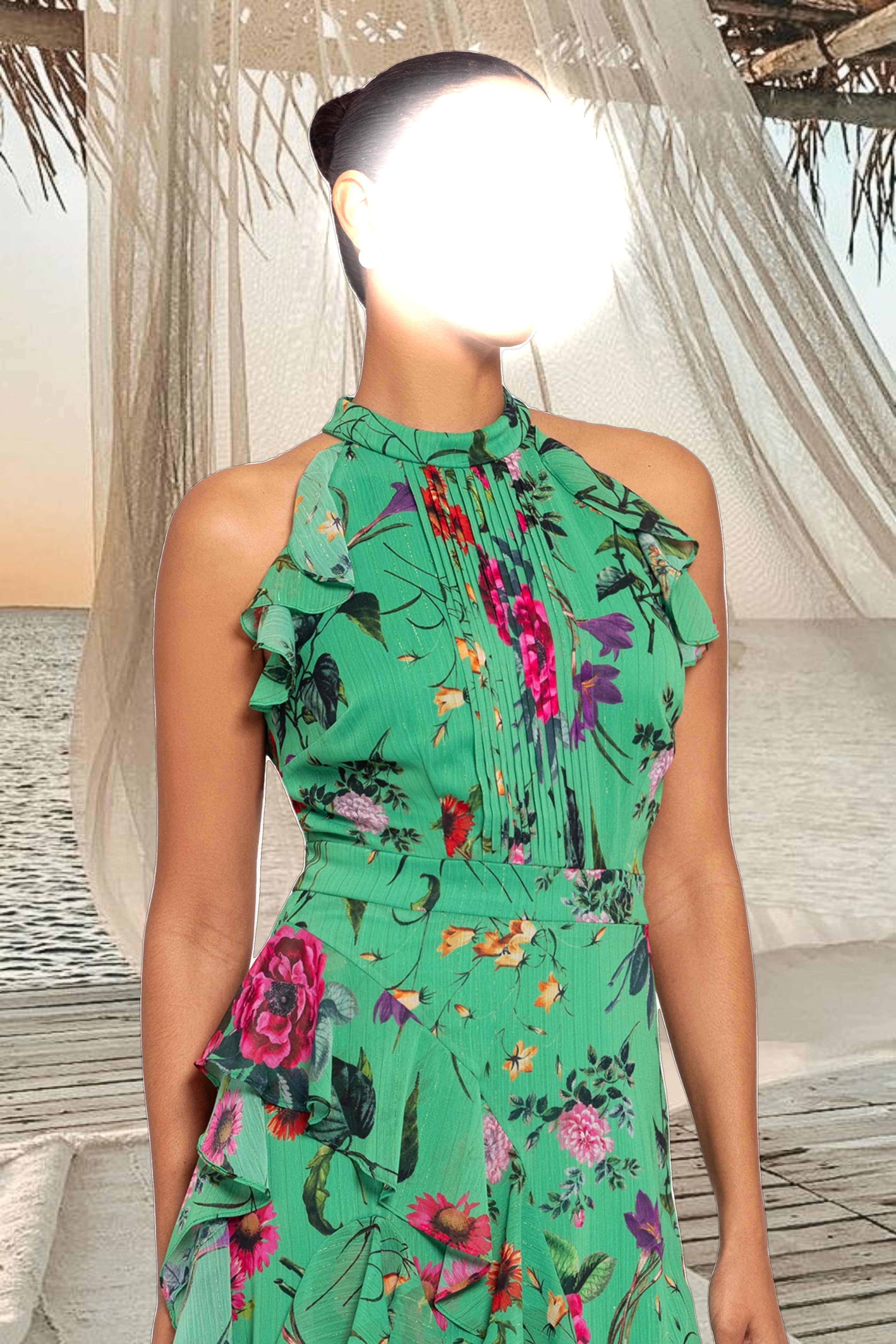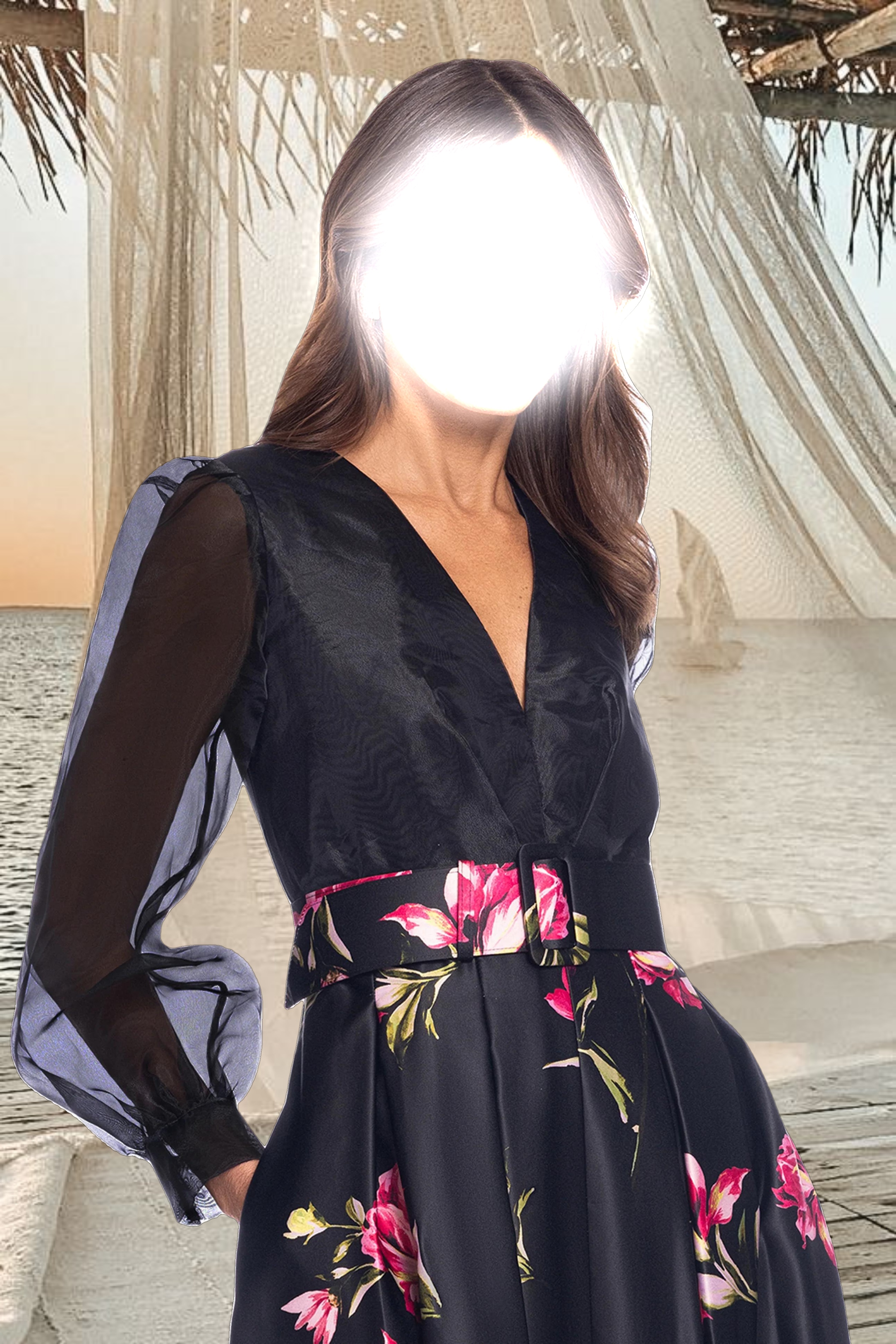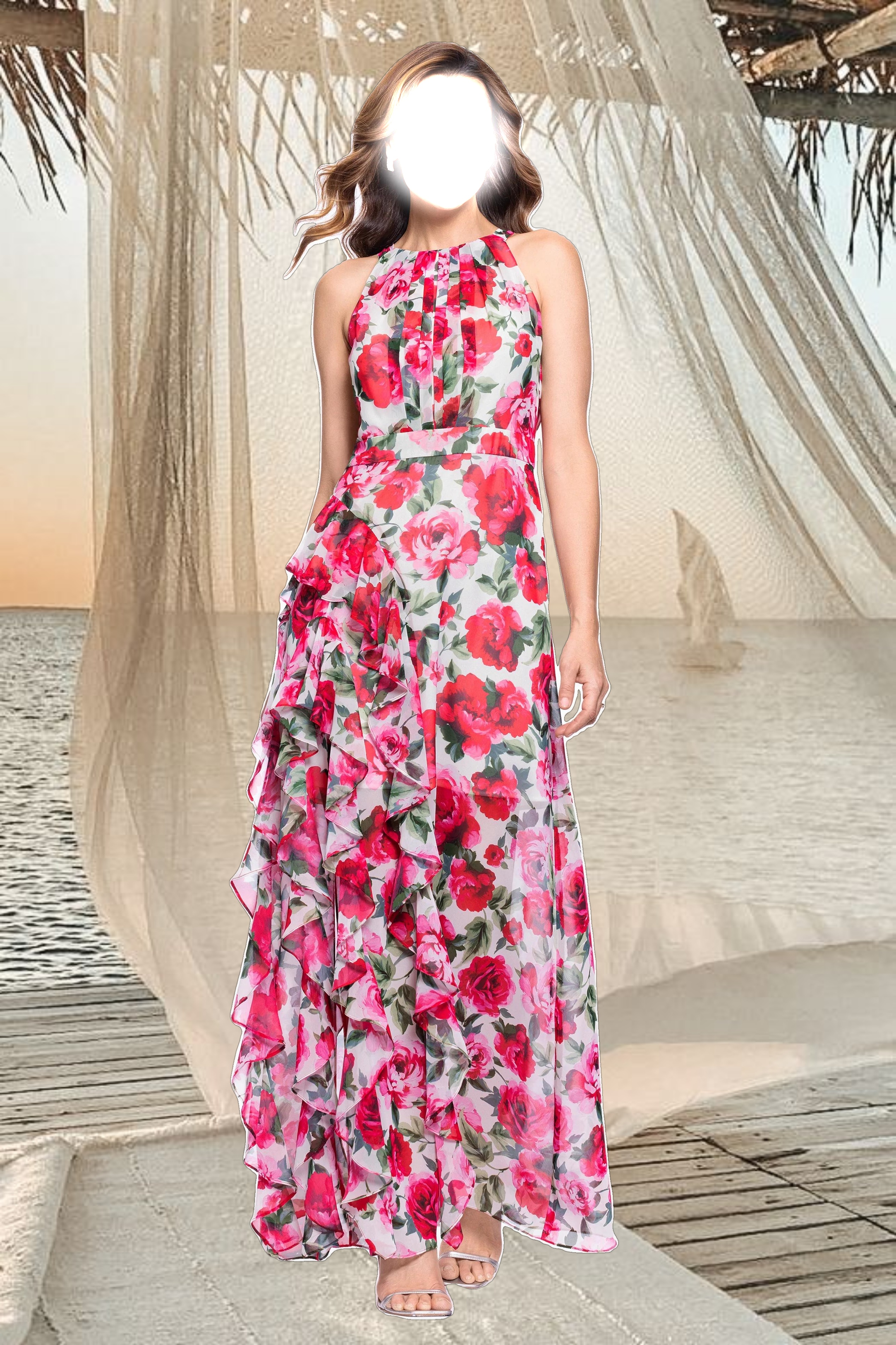 "Sandy" Long Chiffon Floral Ruffle Dress