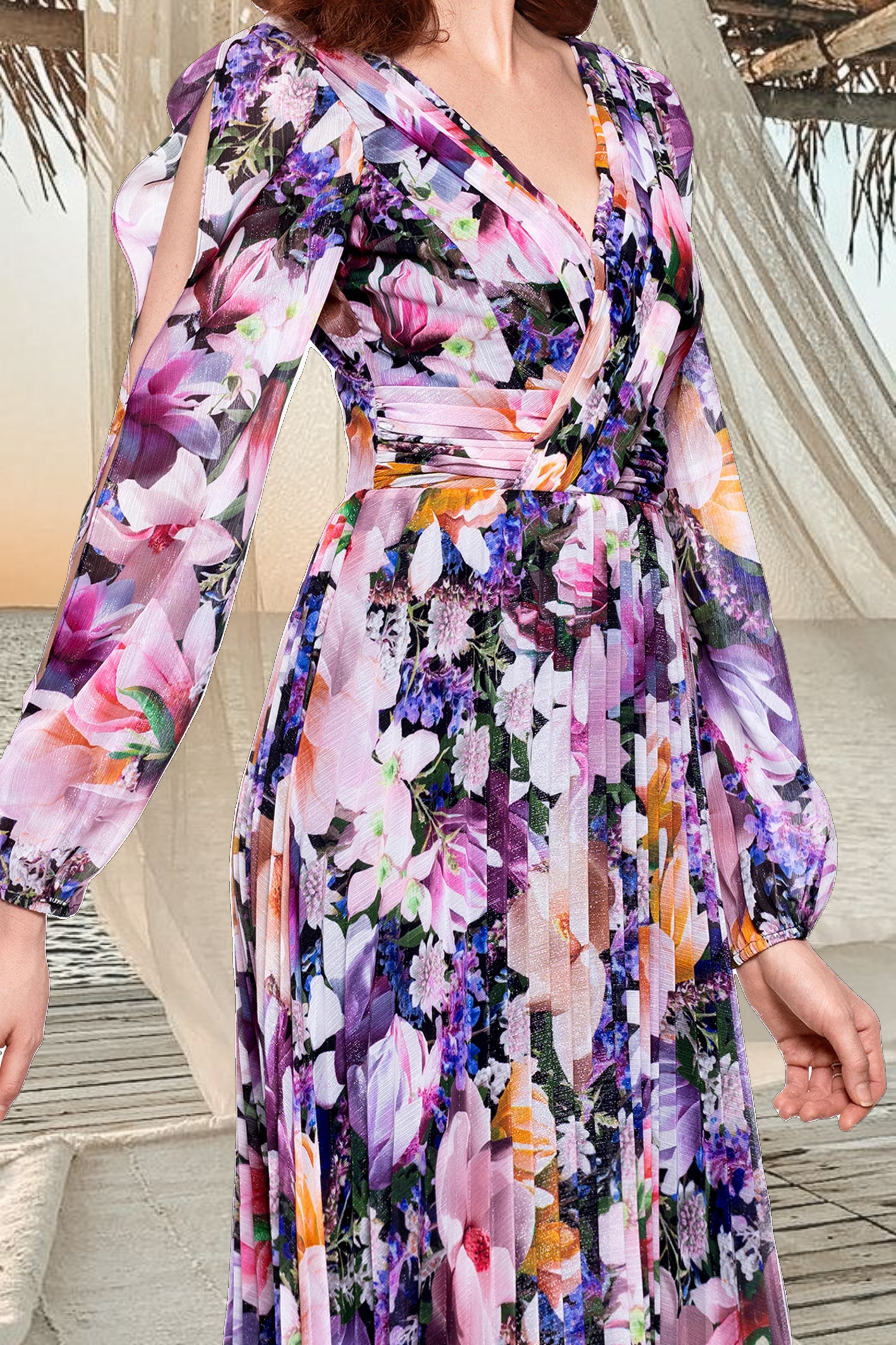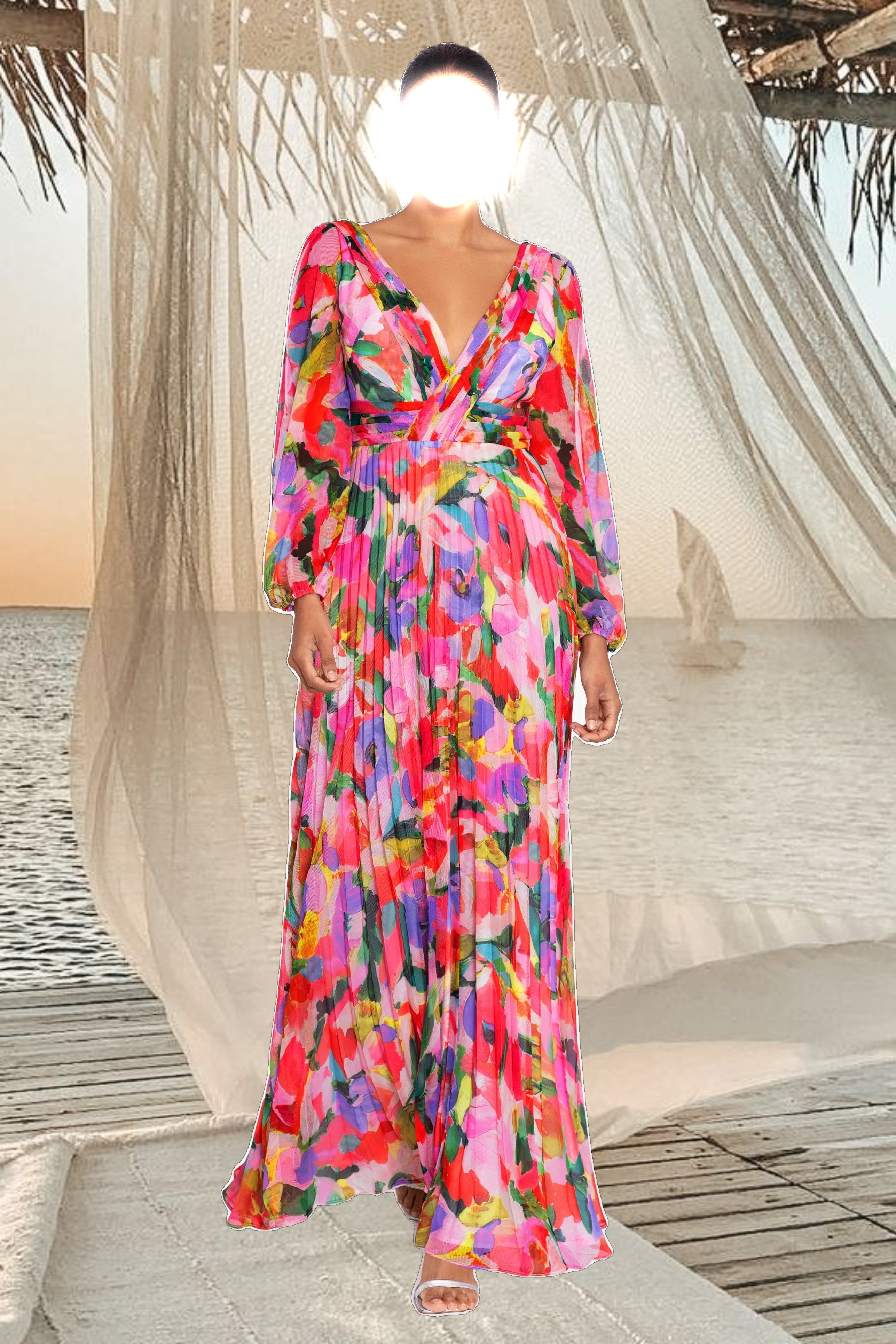 "Amber" Long Sleeve Chiffon Print Floor Length Dress