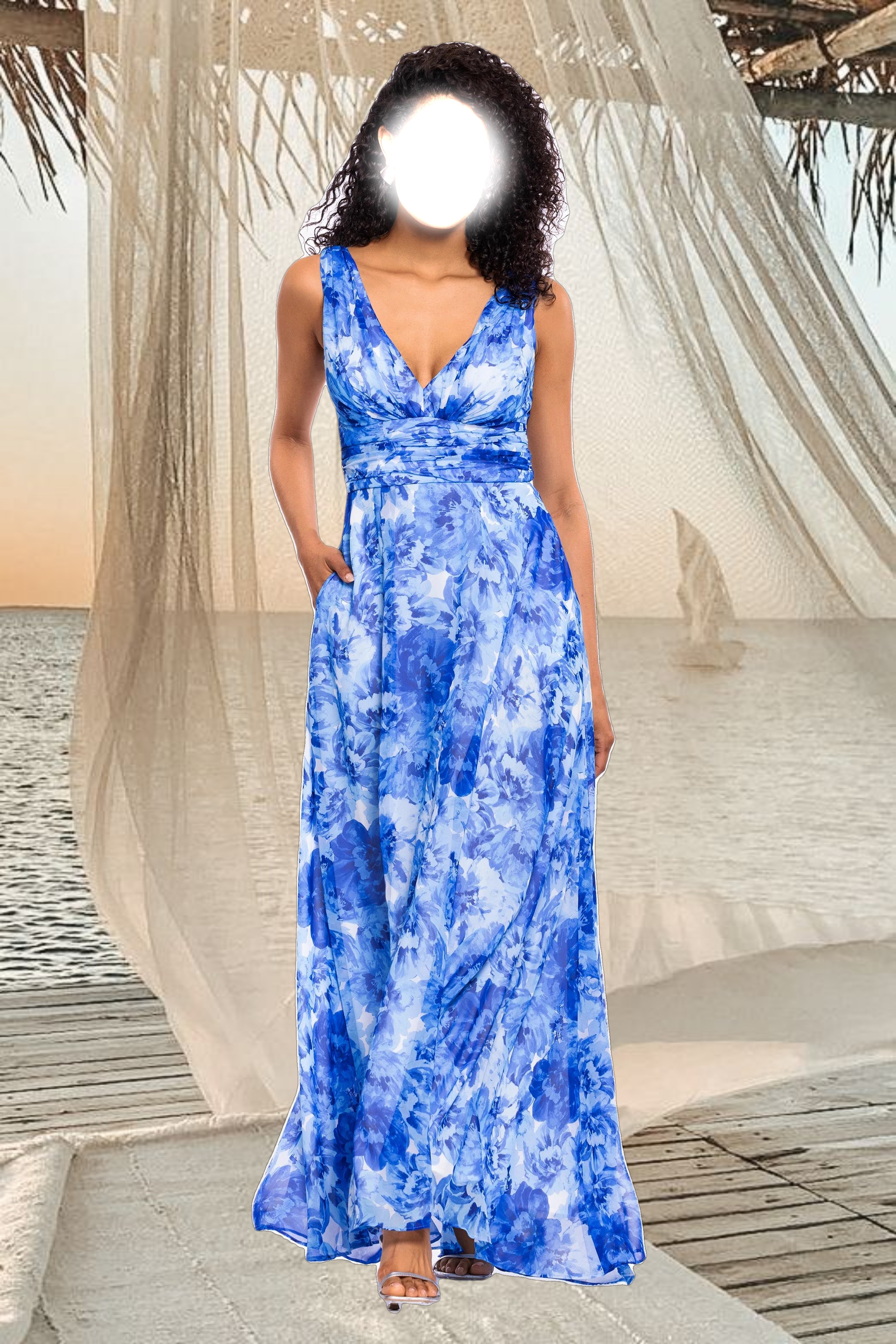 Plus "Kyla" Sleeveless V-Neck Floral Floor Length Chiffon Dress