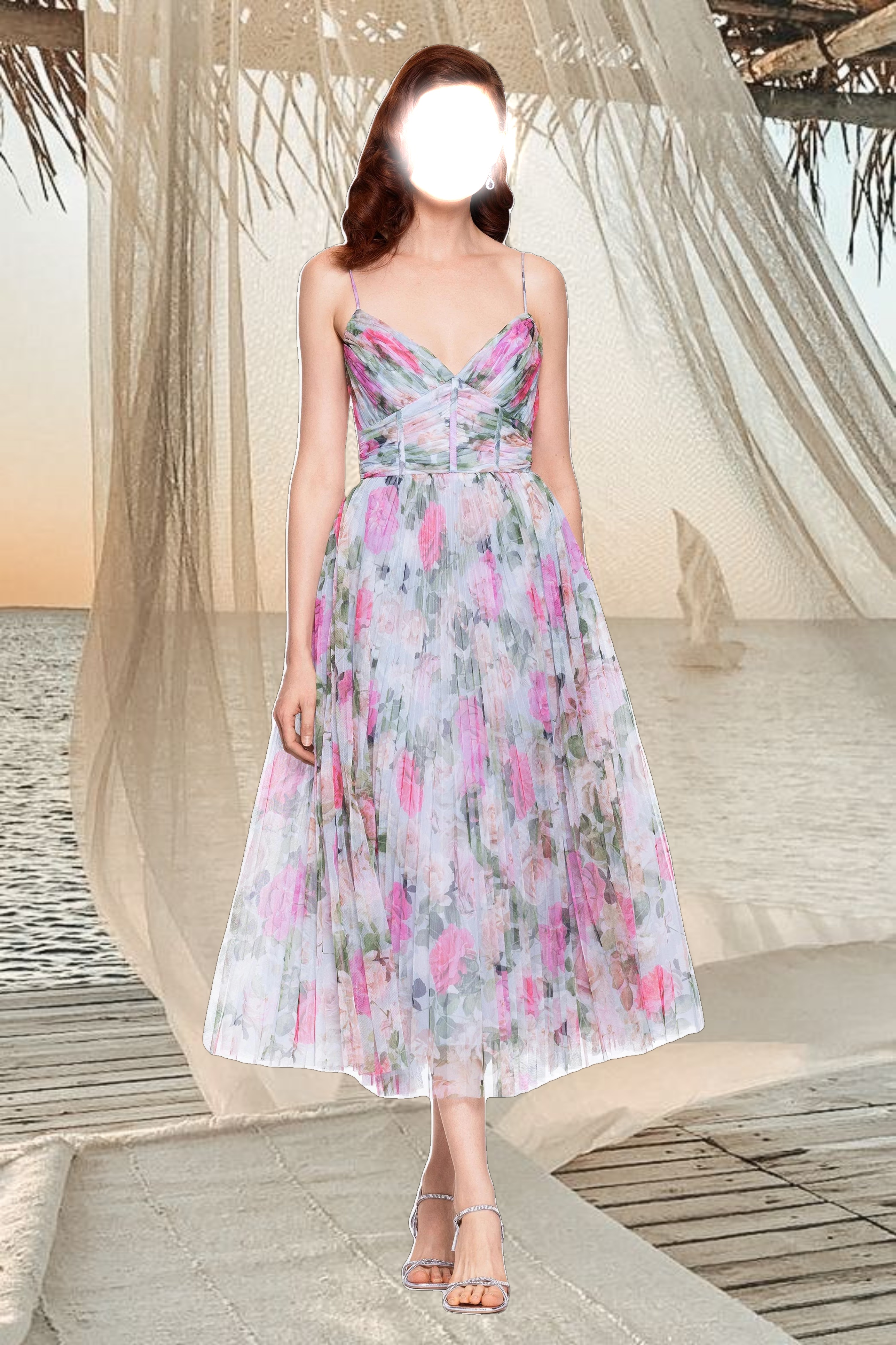 "Mimi" Floral Print Chiffon Floor Length Dress