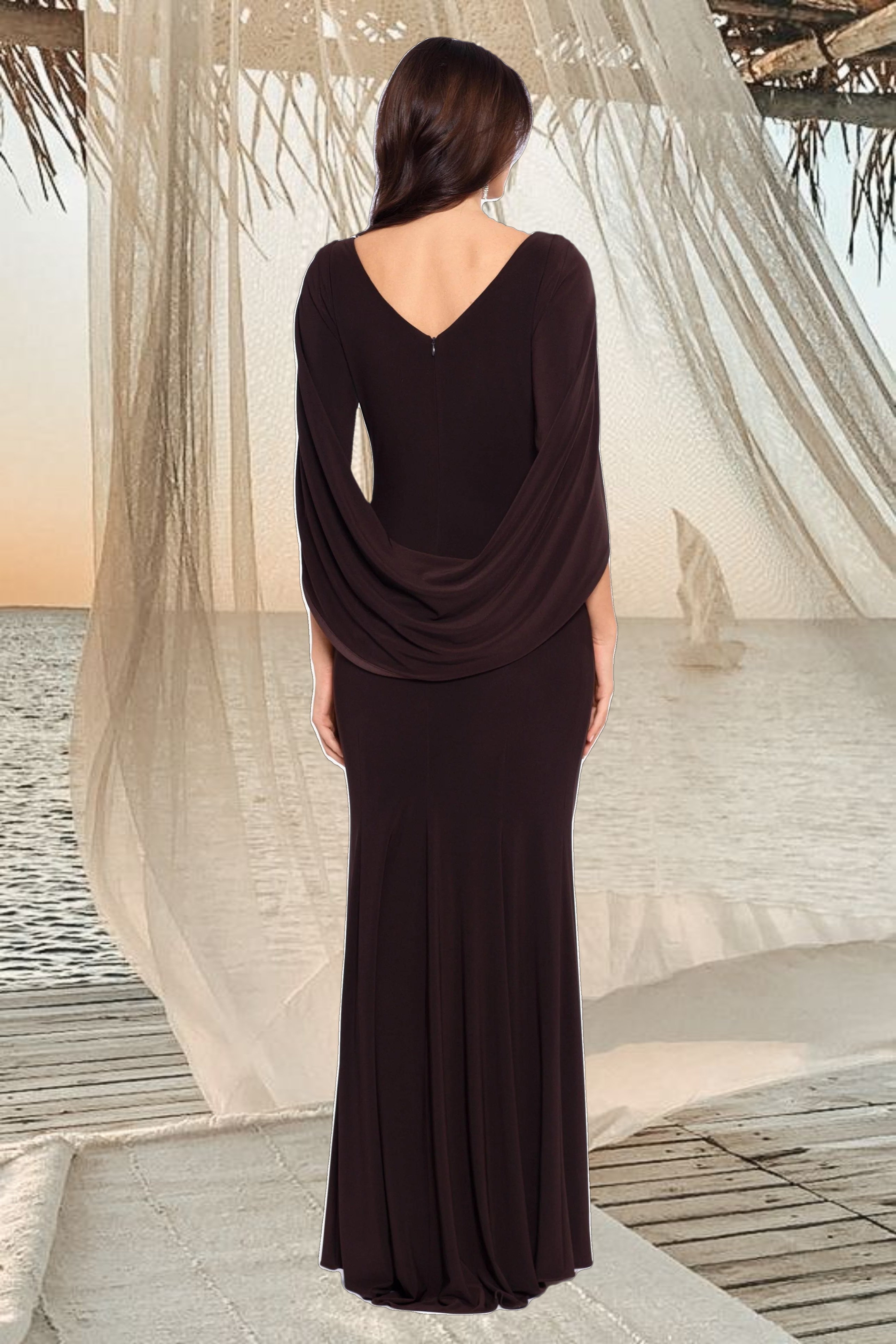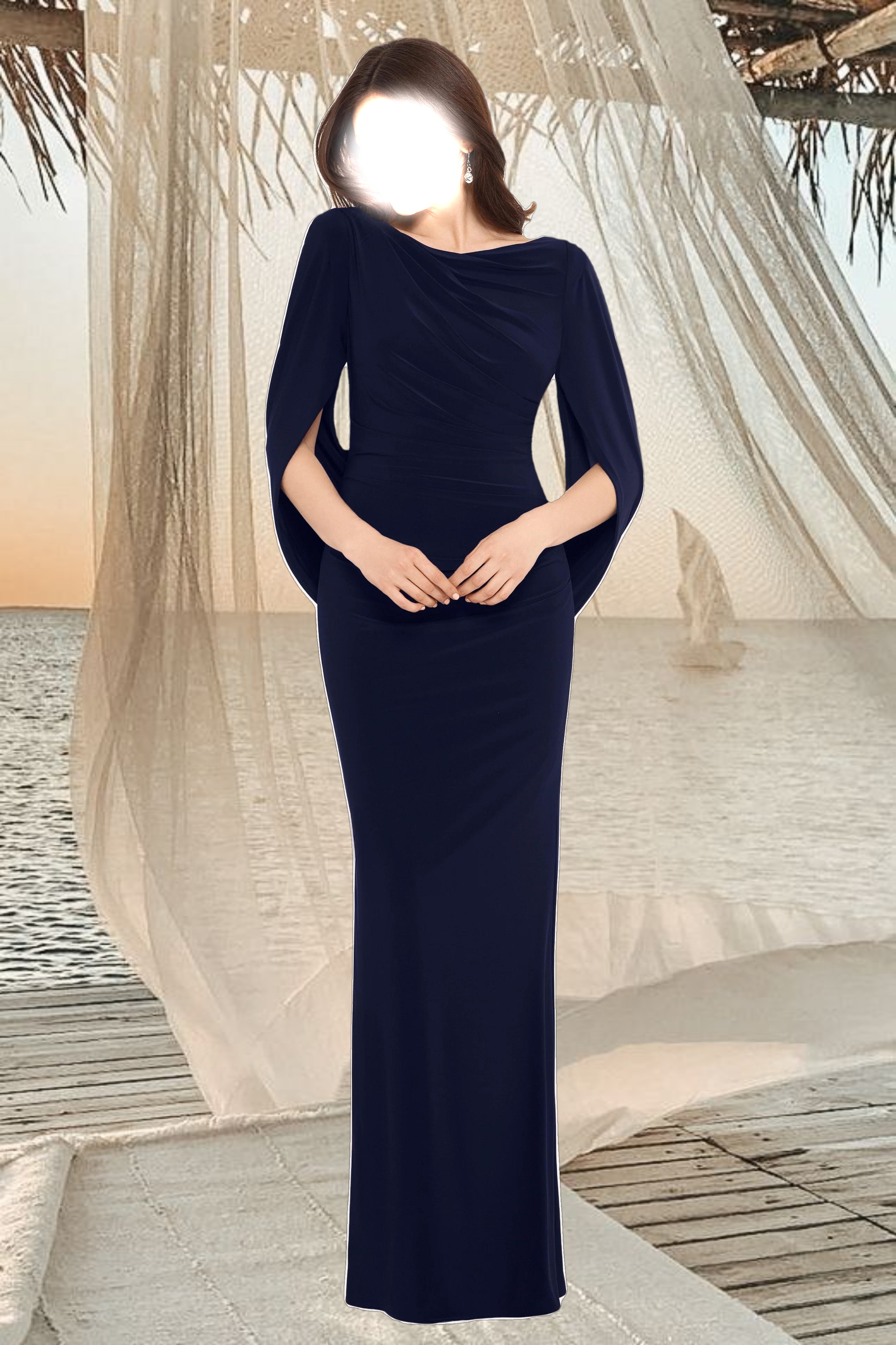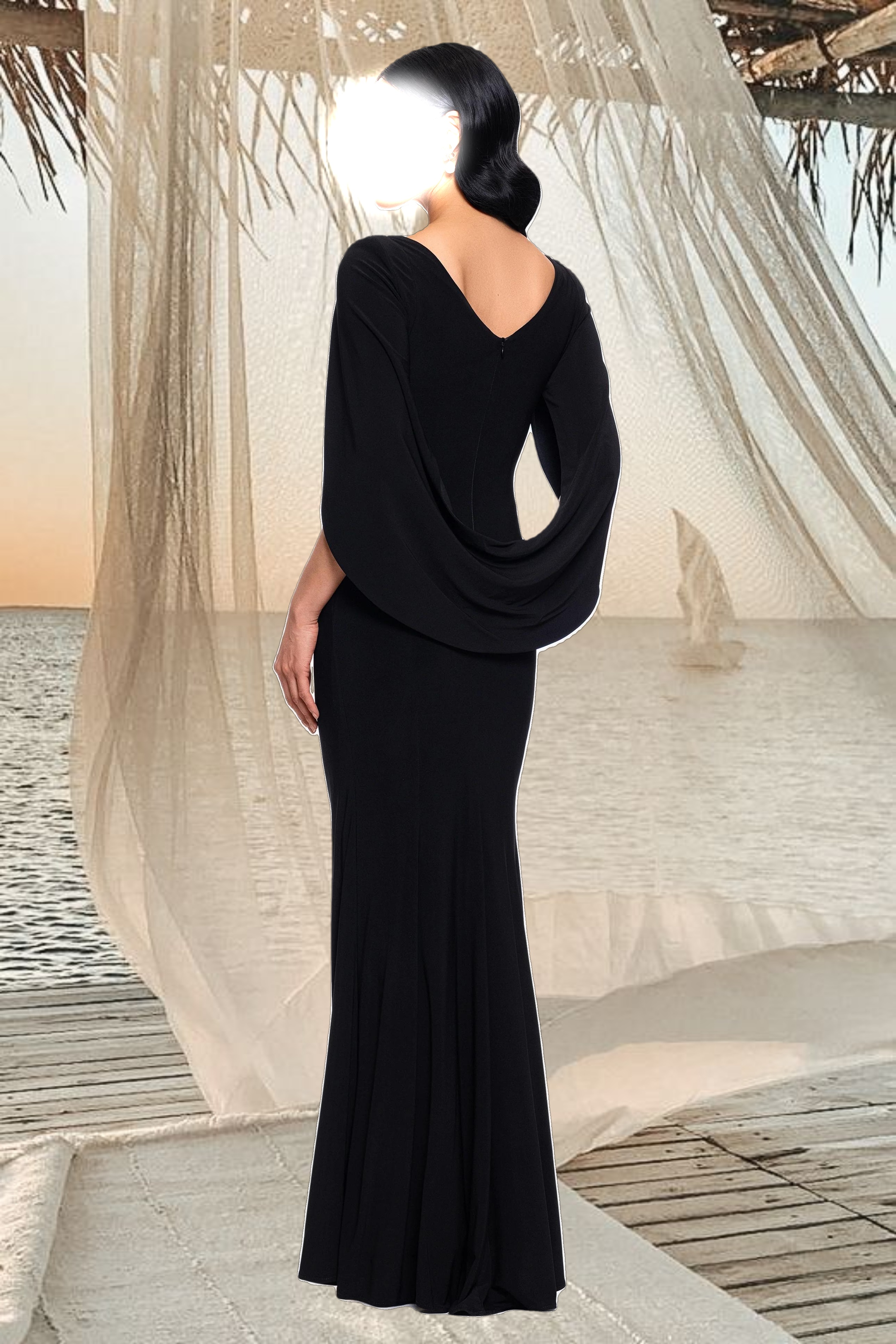 Stay bold and take on the challenges of the night in our "Miriam" Long Knit Draped Gown. Made with comfortable knit material and fully lined for a smooth fit. Featuring a hidden back zipper for a sleek look and boat neck with draped sleeves for a touch of drama. Be fearless in this straight fit gown.