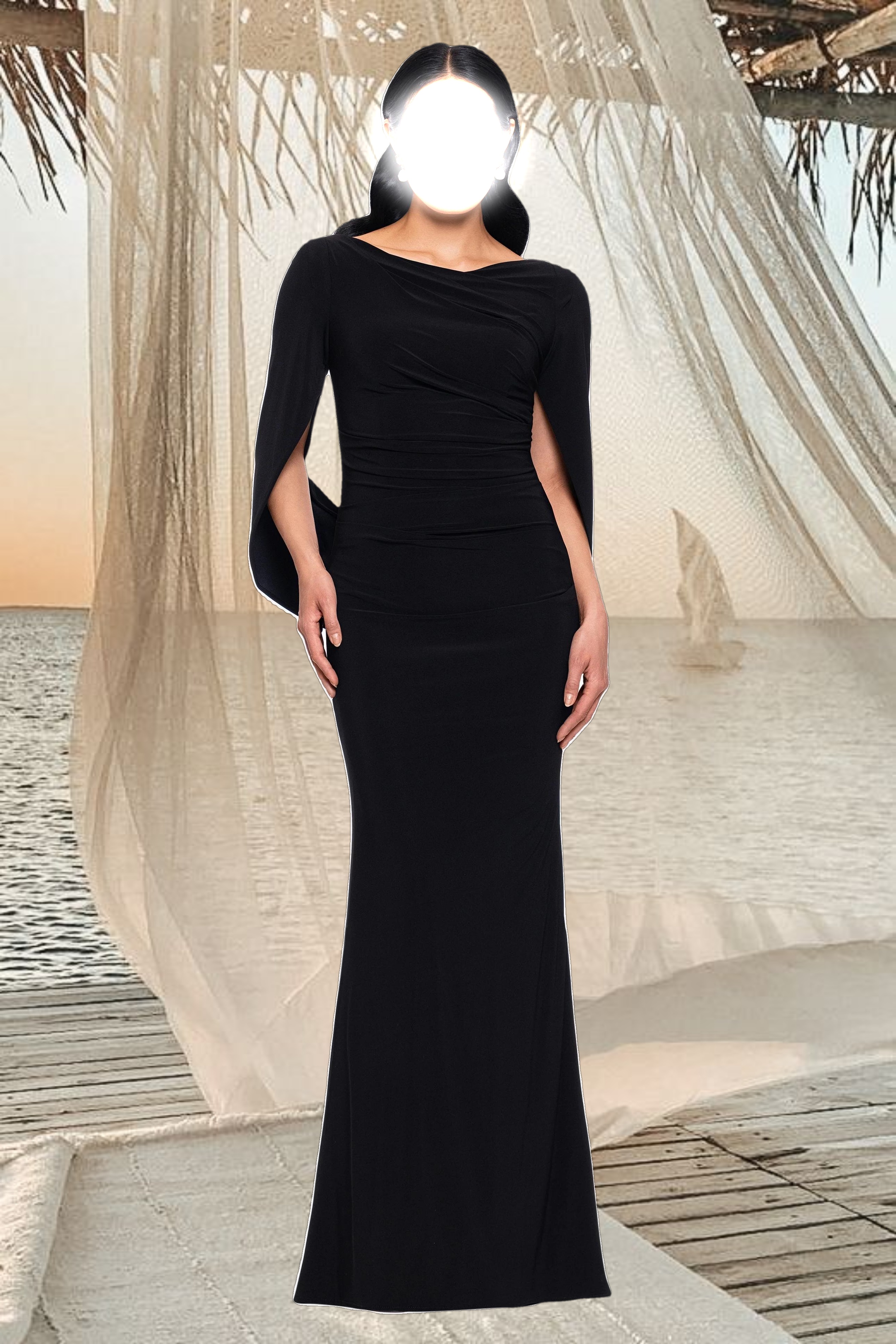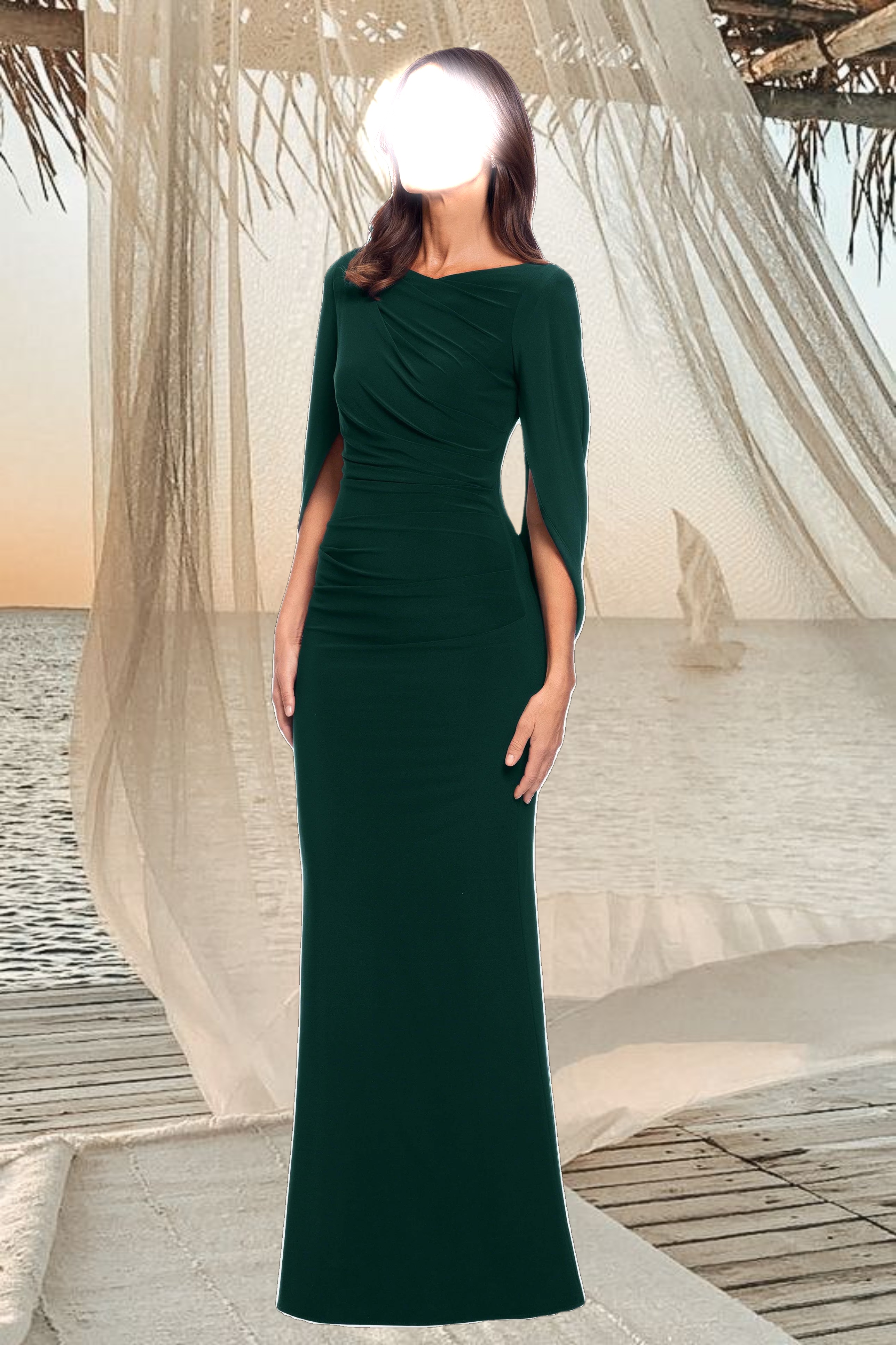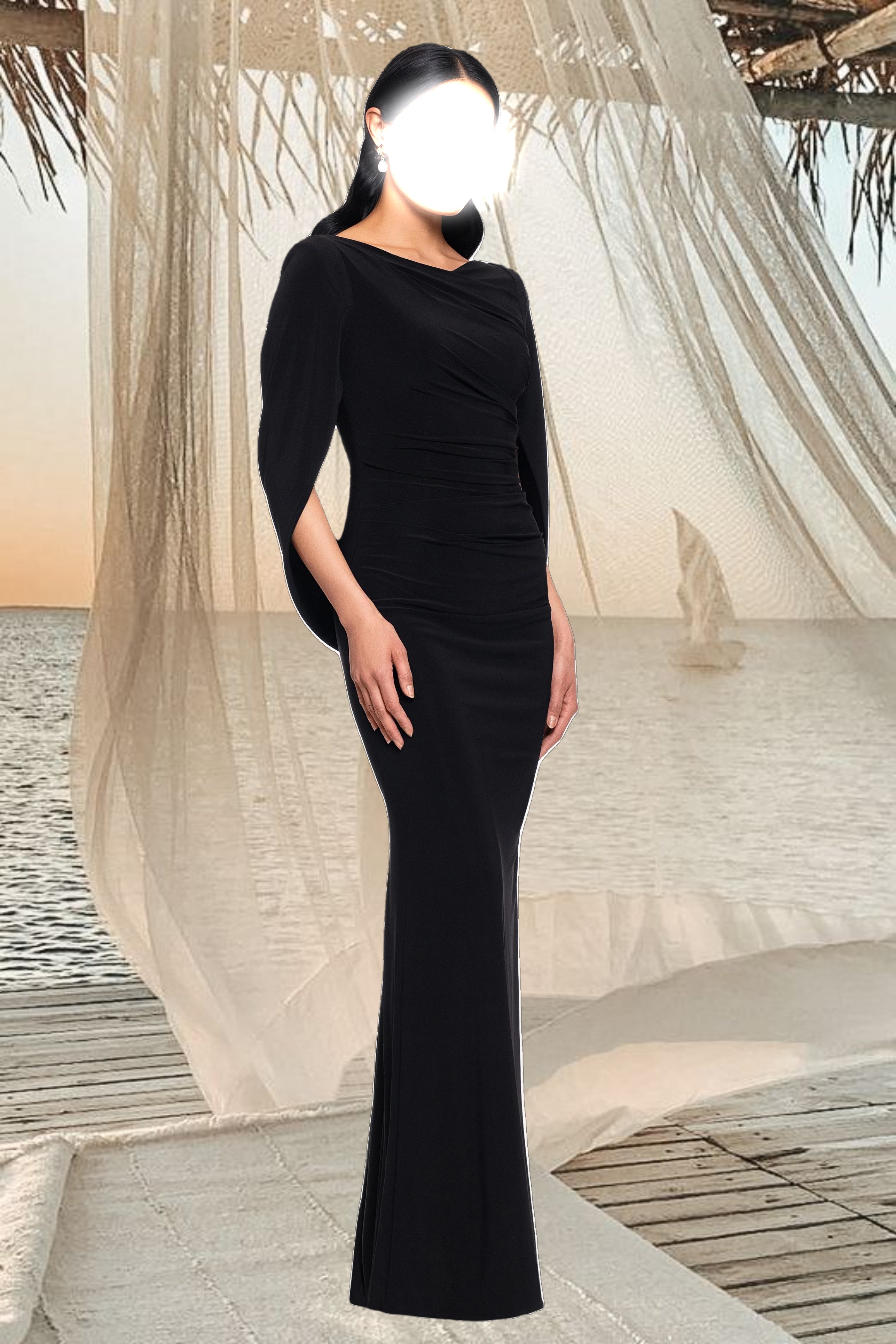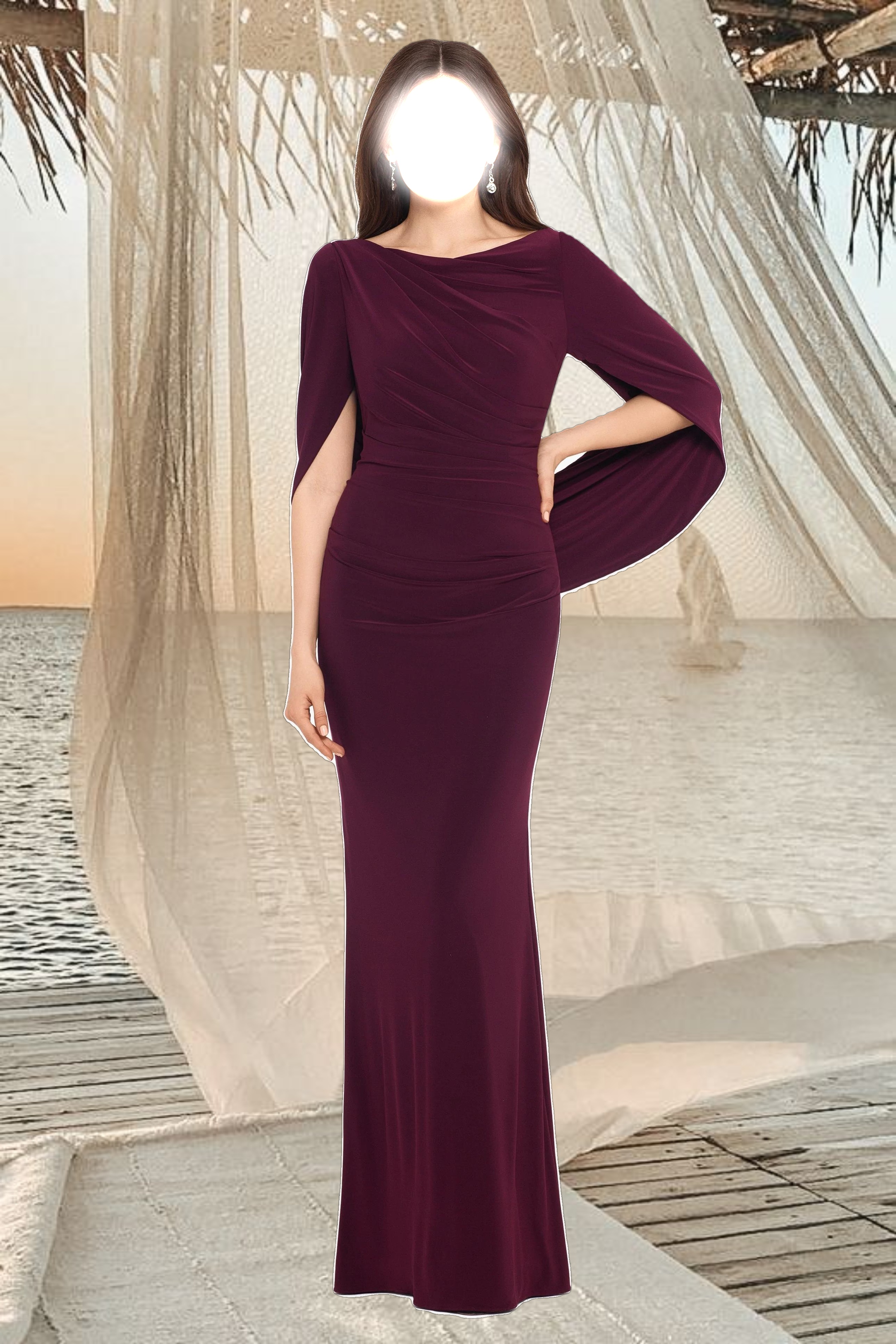 Stay bold and take on the challenges of the night in our "Miriam" Long Knit Draped Gown. Made with comfortable knit material and fully lined for a smooth fit. Featuring a hidden back zipper for a sleek look and boat neck with draped sleeves for a touch of drama. Be fearless in this straight fit gown.