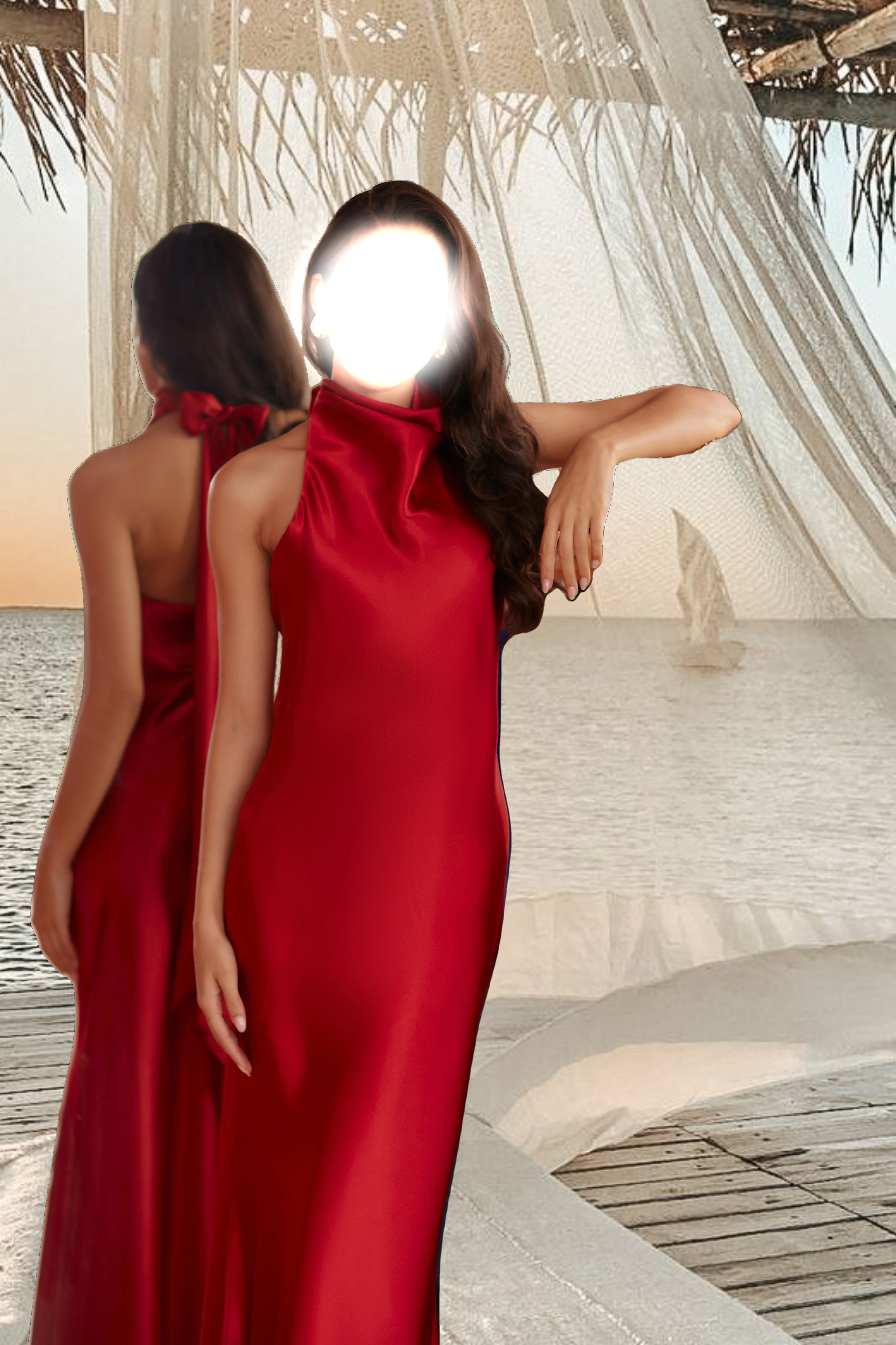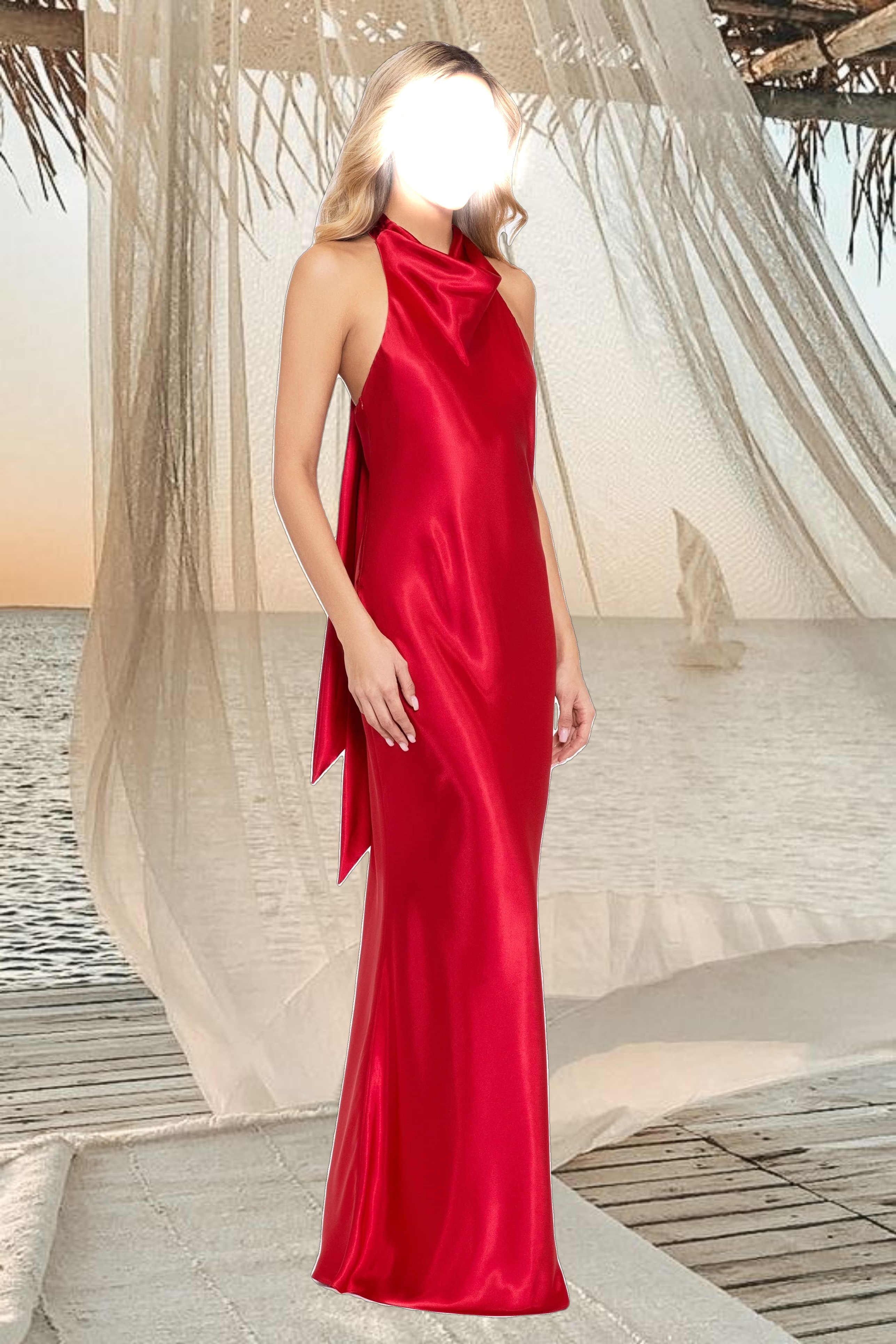 Home / Red / "Shannon" Halter Necktie Floor Length Dress