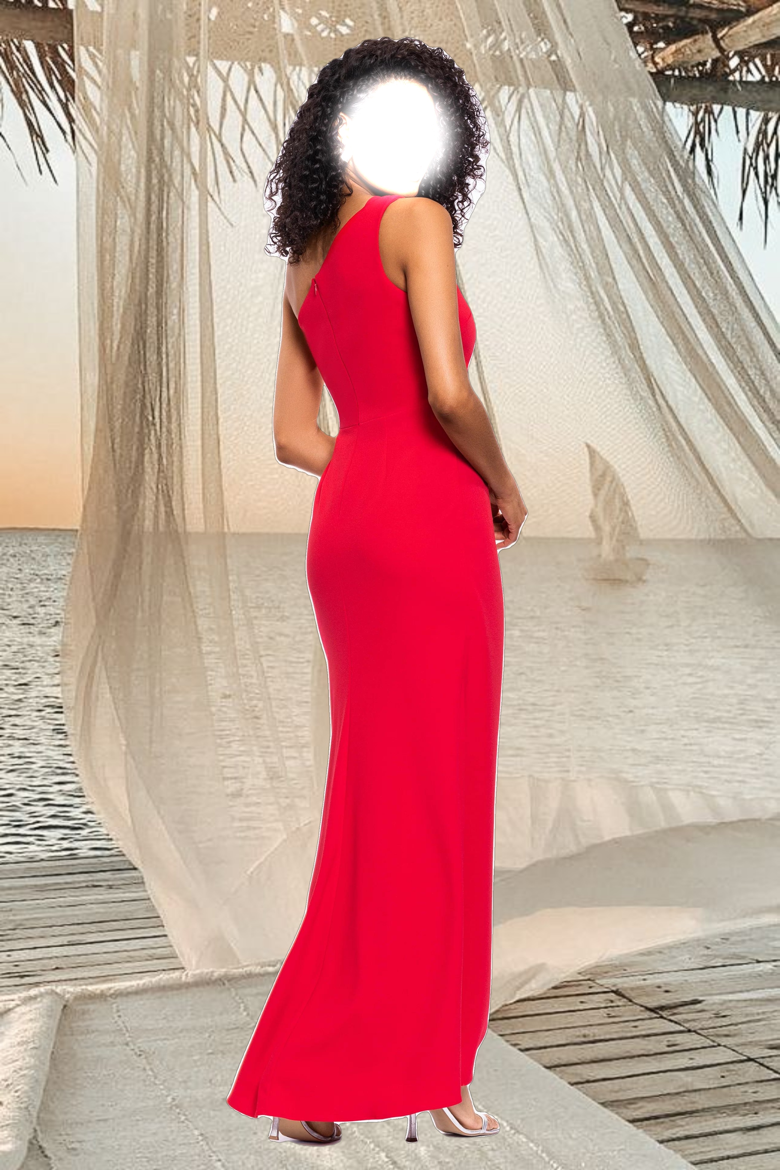 - Details: Asymmetrical top, Side Ruche, Top Slit, Long Dress