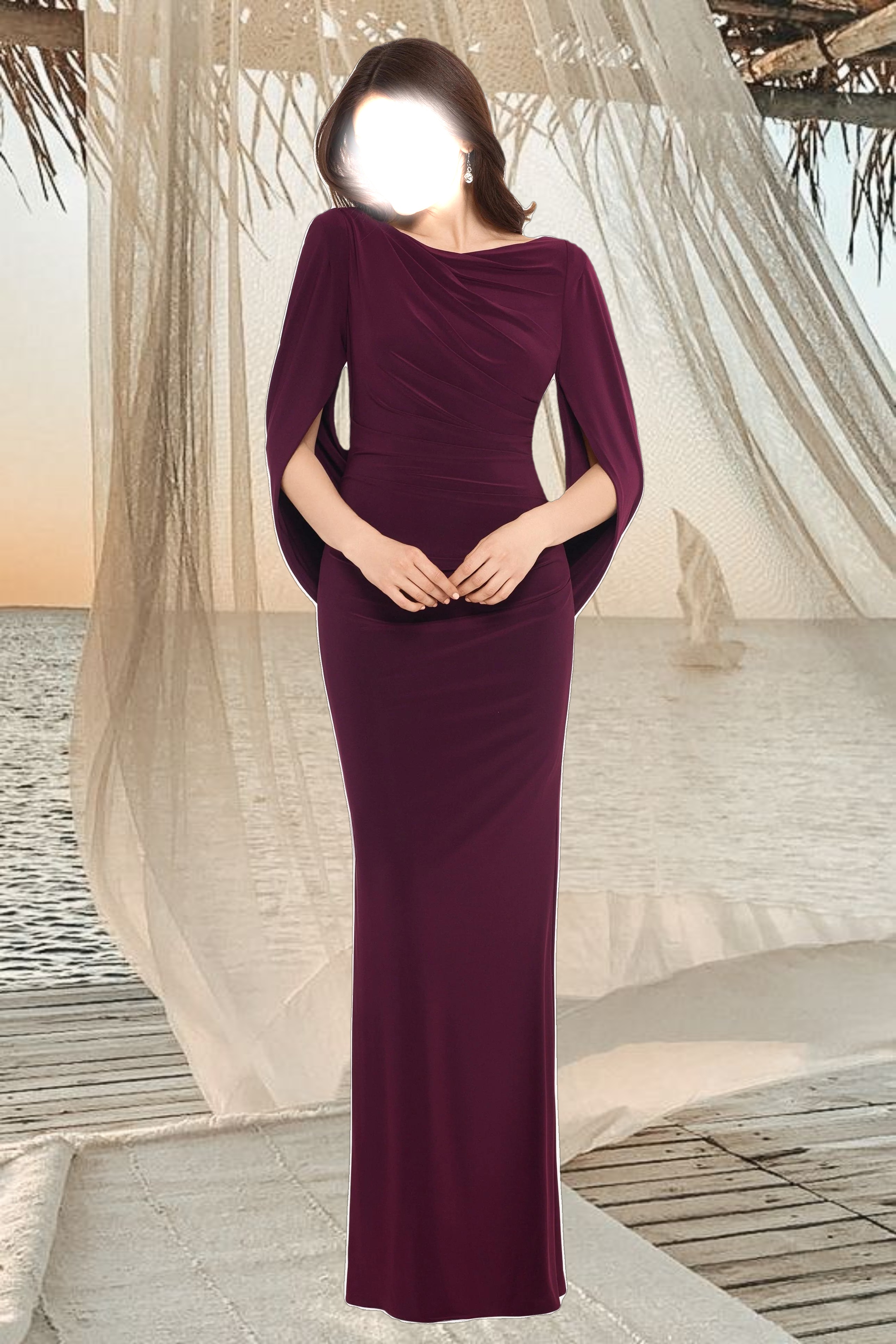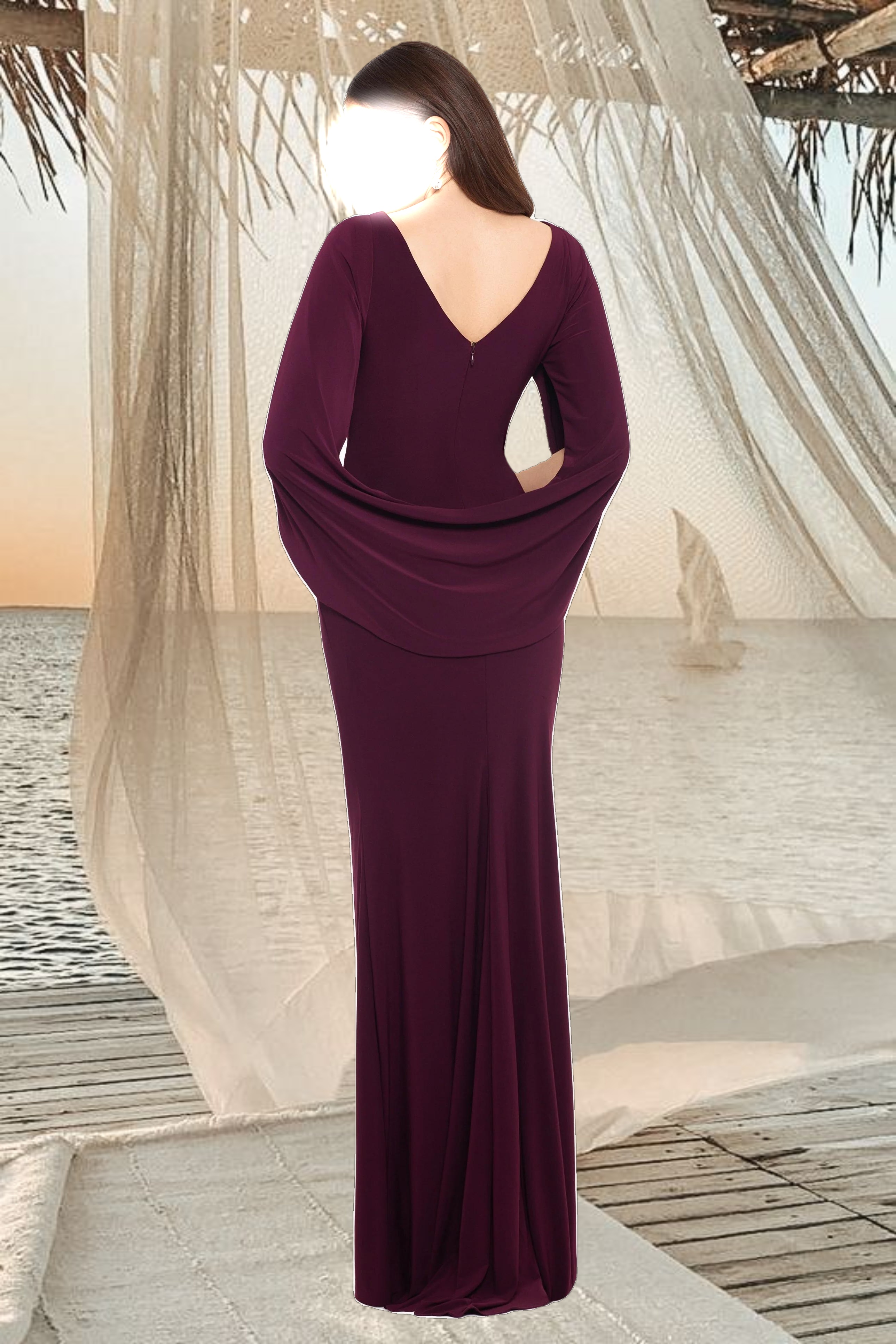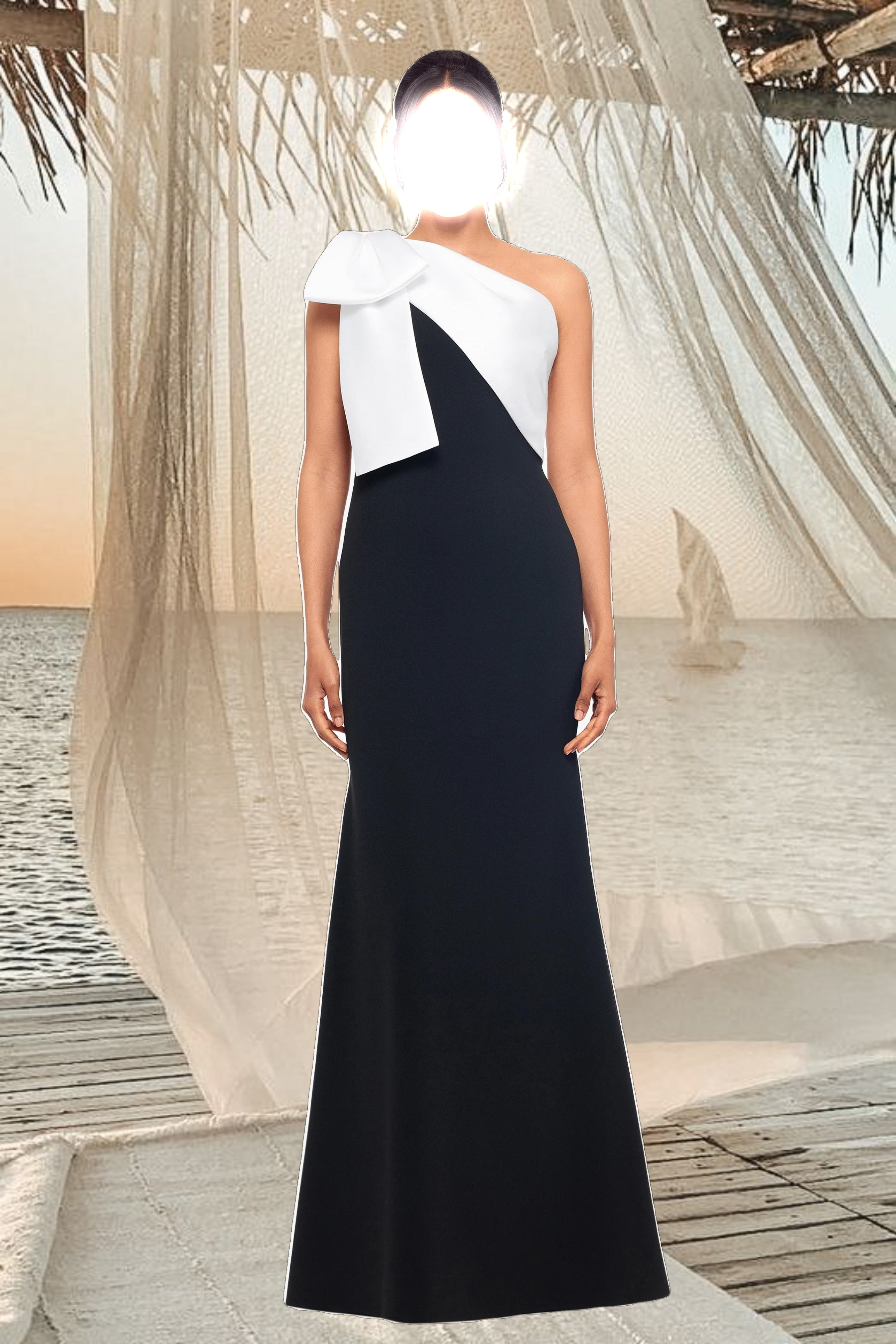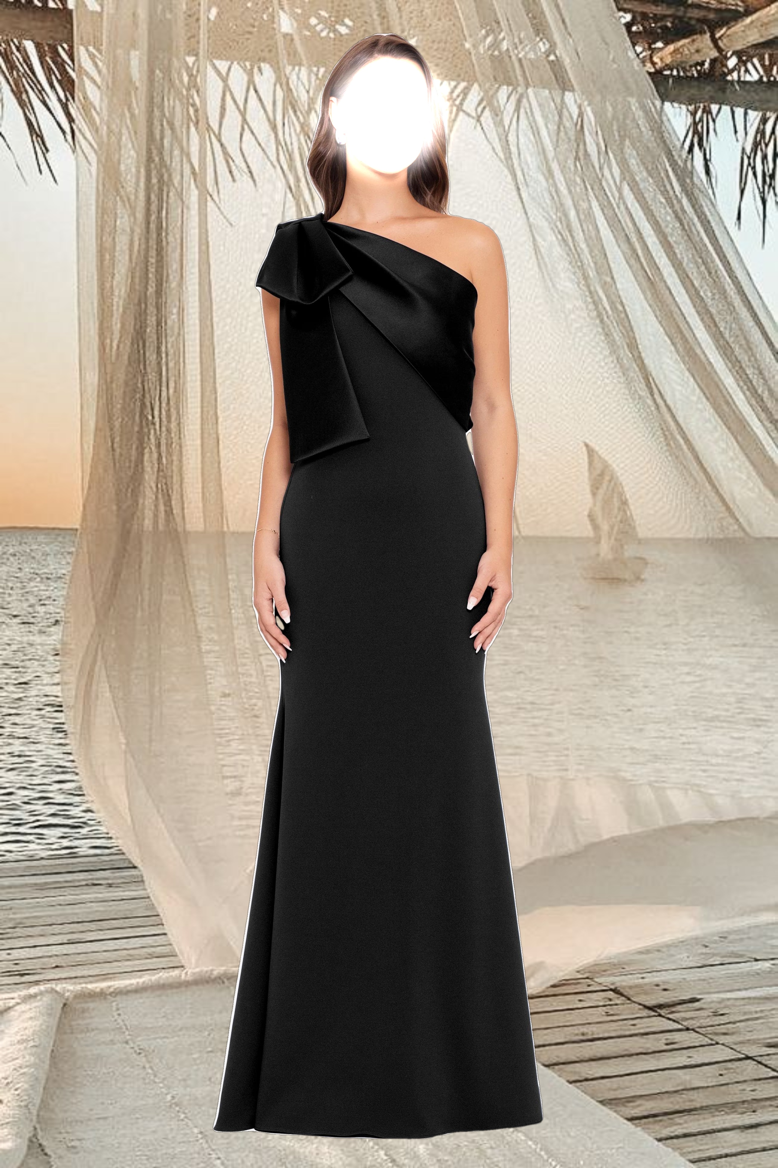 "Carmela" Long Scuba Crepe Dress with Satin Bow