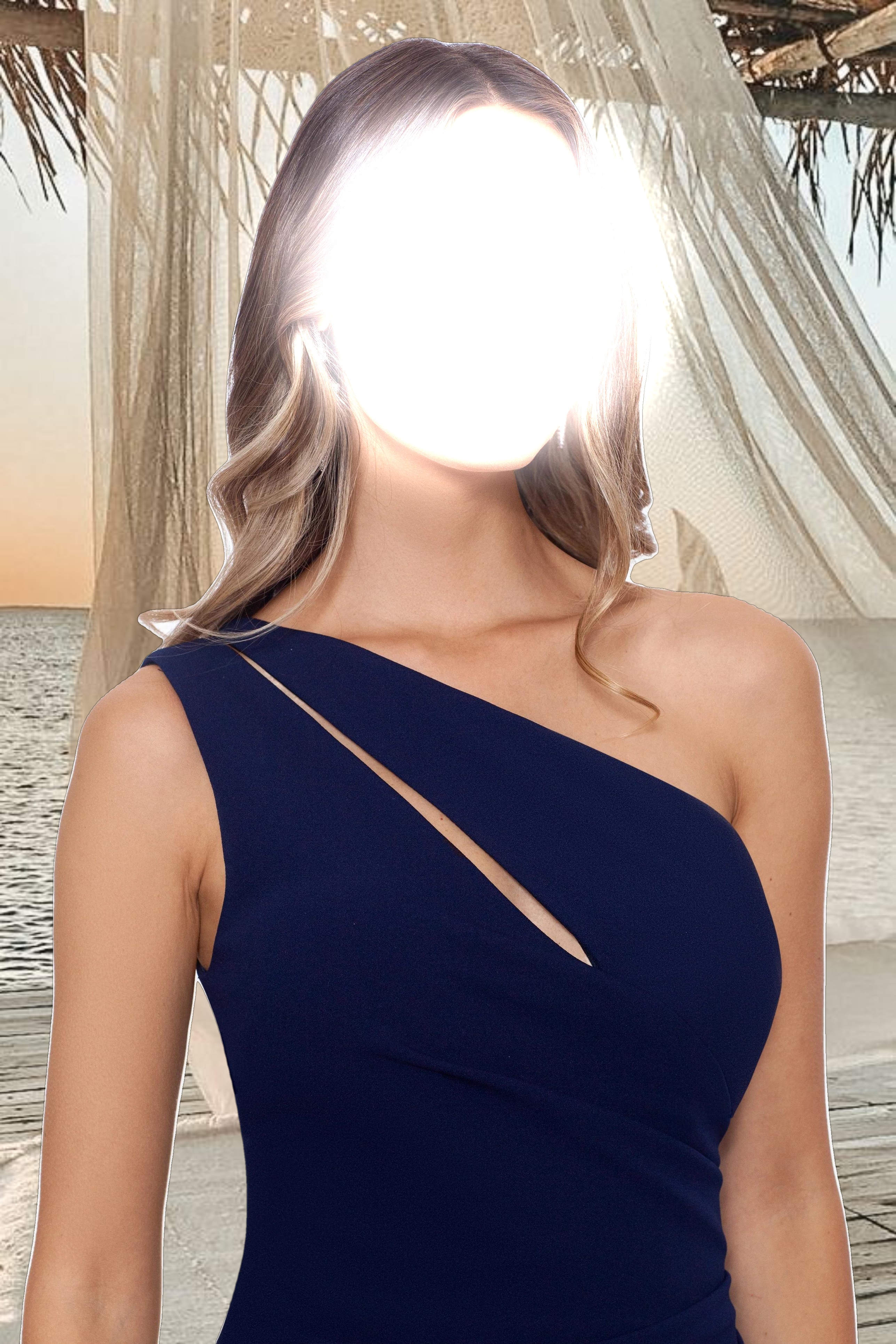 Plus "Madeline" Long Scuba Crepe Off the Shoulder Drop Dress