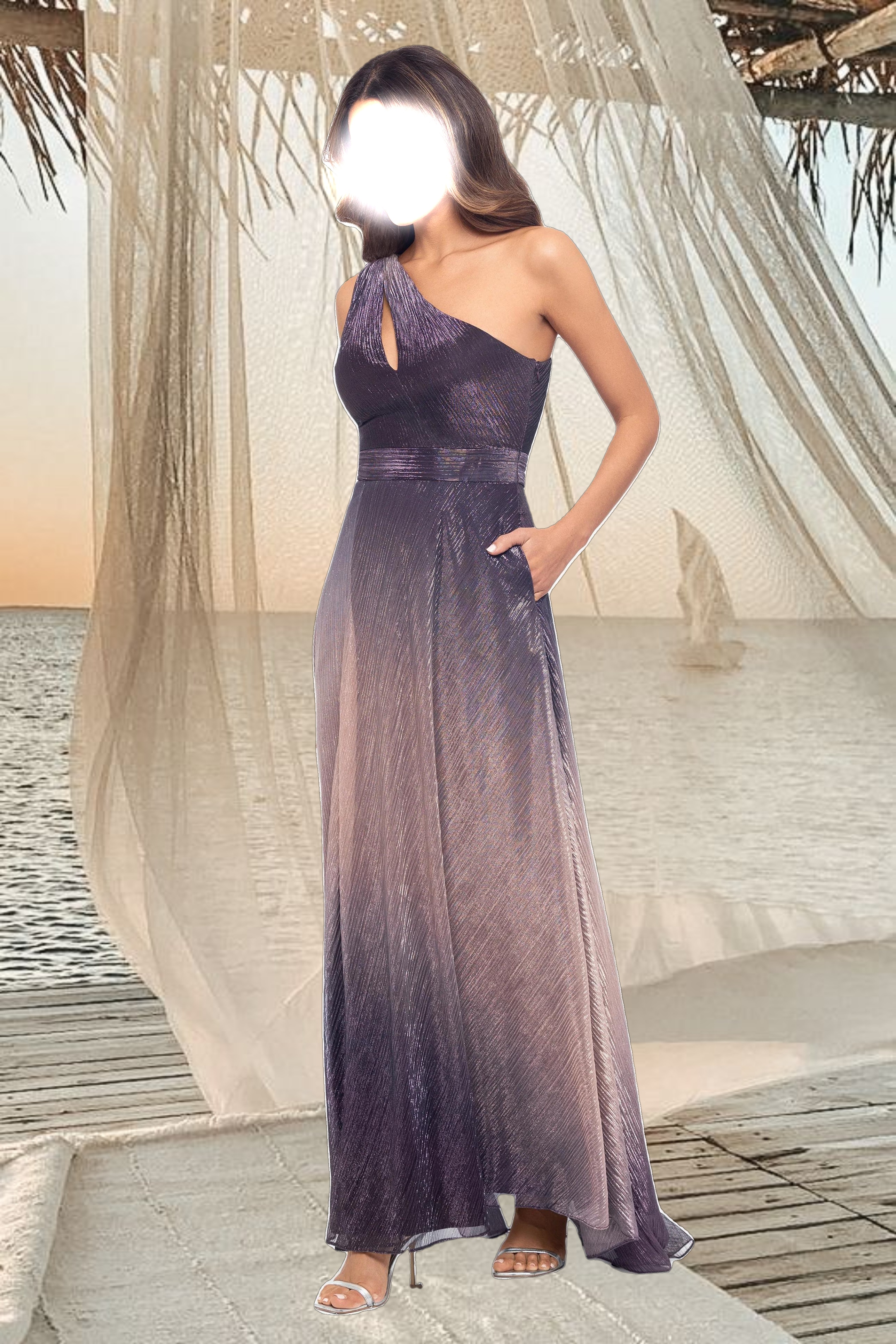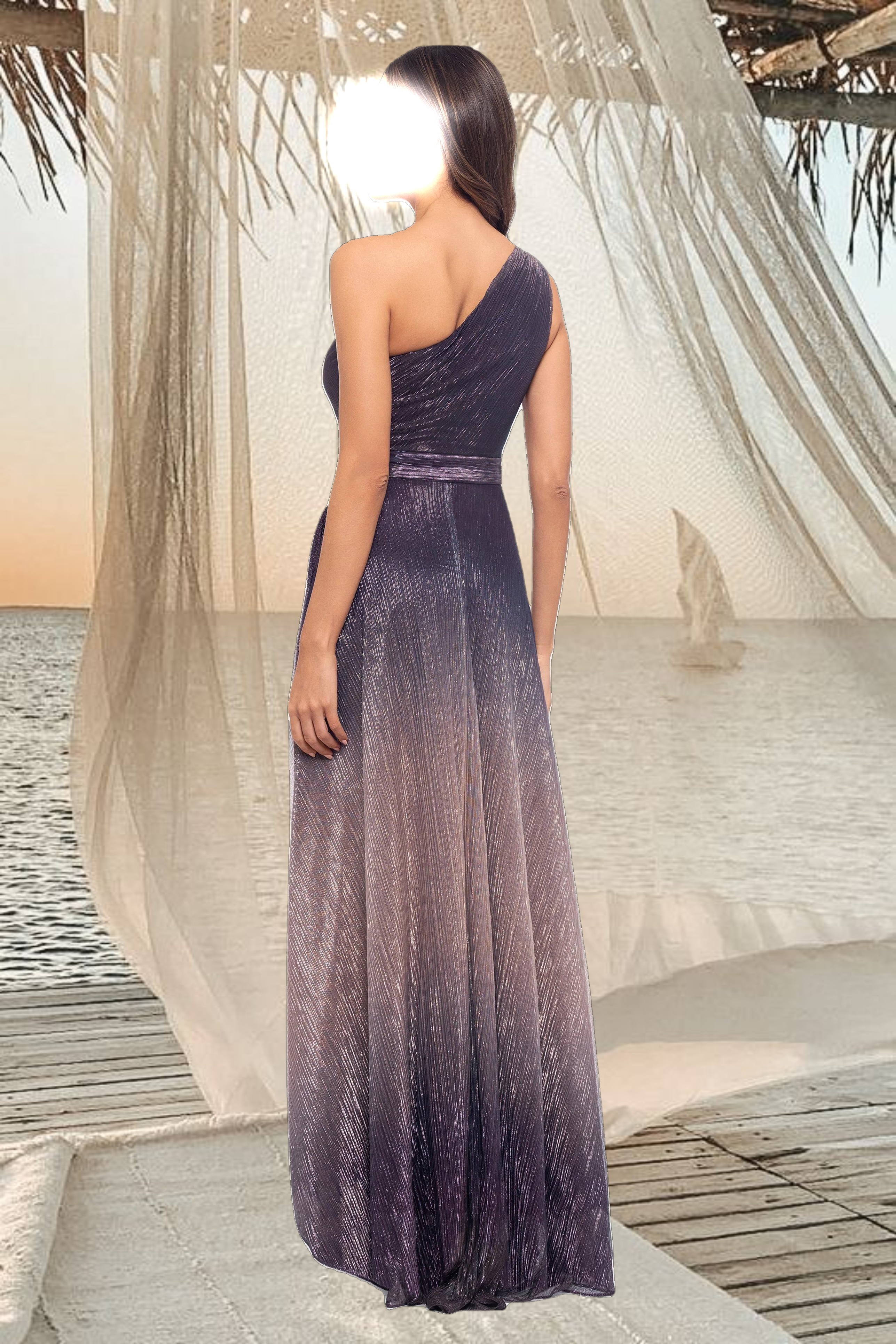 Shimmer and shine in our Long Ombre Crinkle Metallic One Shoulder Dress, a dazzling choice for your next special occasion. Featuring a stunning ombre effect and a crinkle metallic fabric, this dress exudes glamour and sophistication. The one-shoulder design adds a touch of elegance, making it perfect for formal events and parties where you want to stand out.