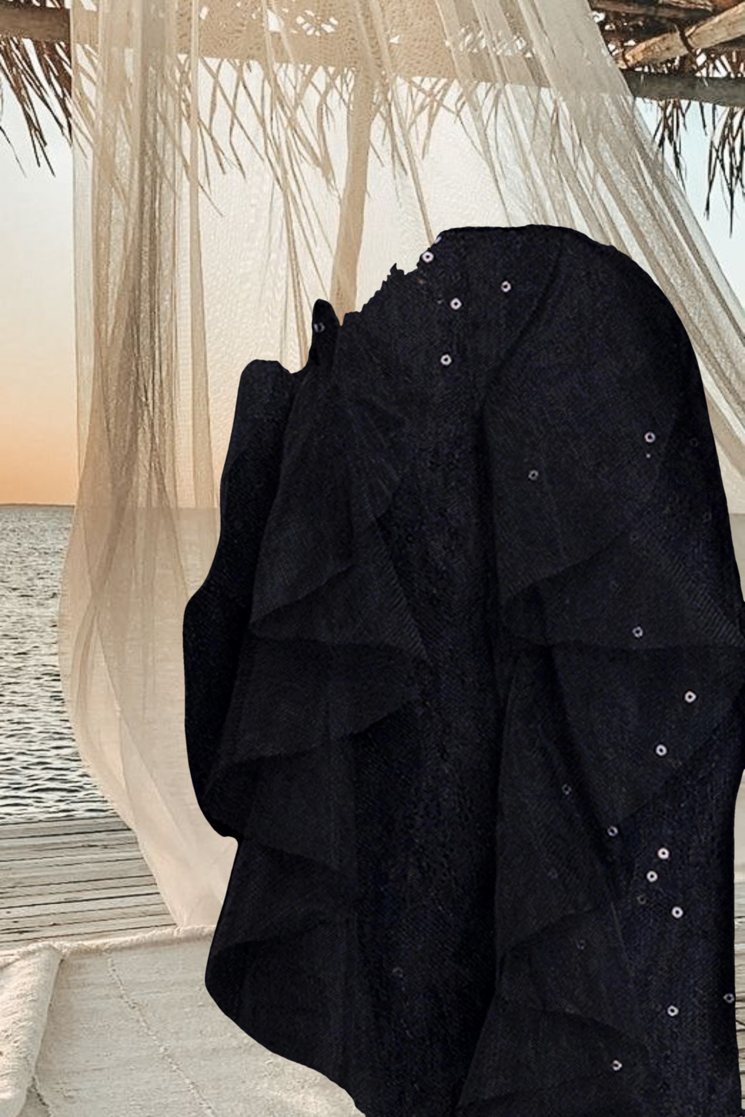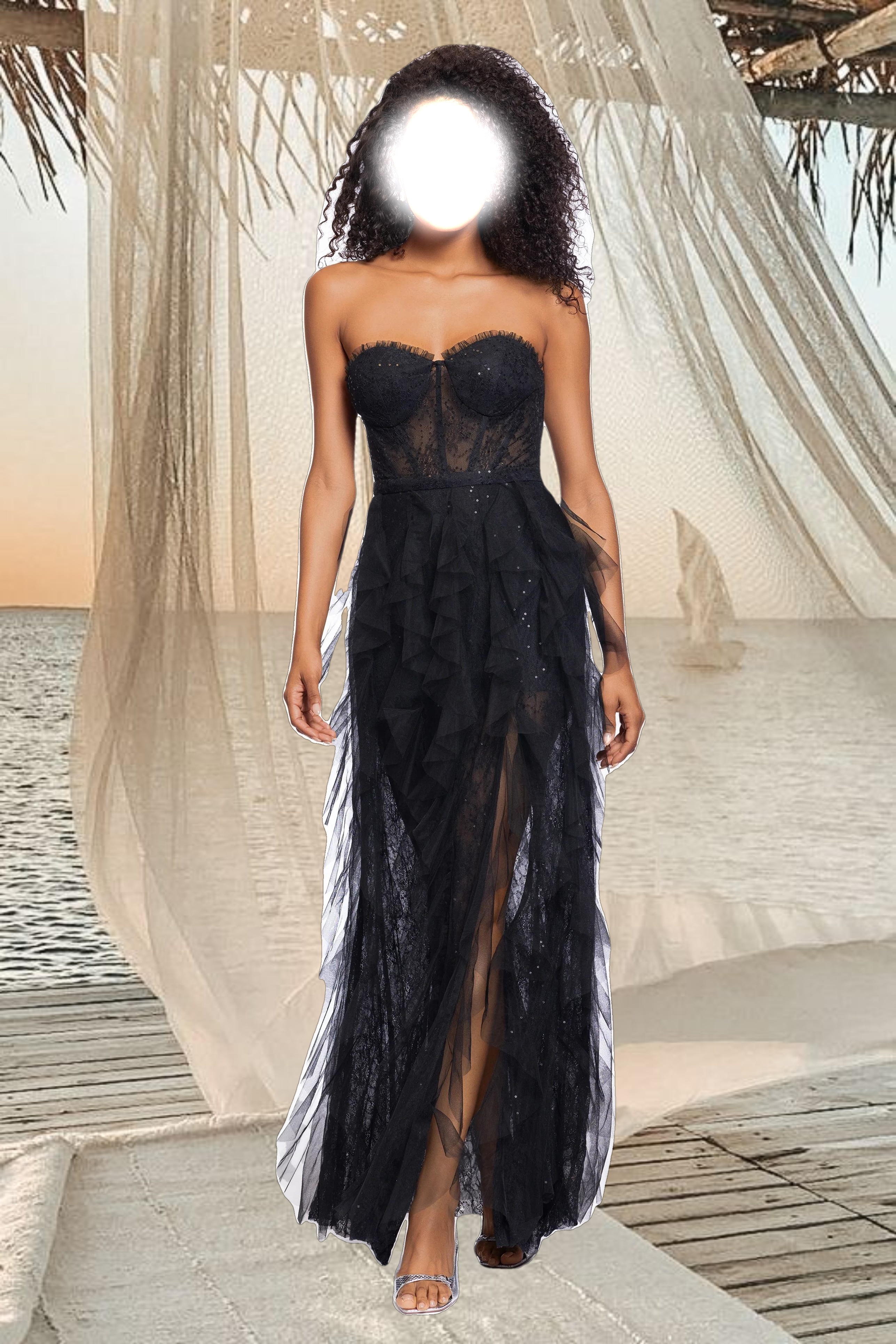 Home / trending / "Angelina" Long Strapless Mesh Floor Length Ruffle Dress