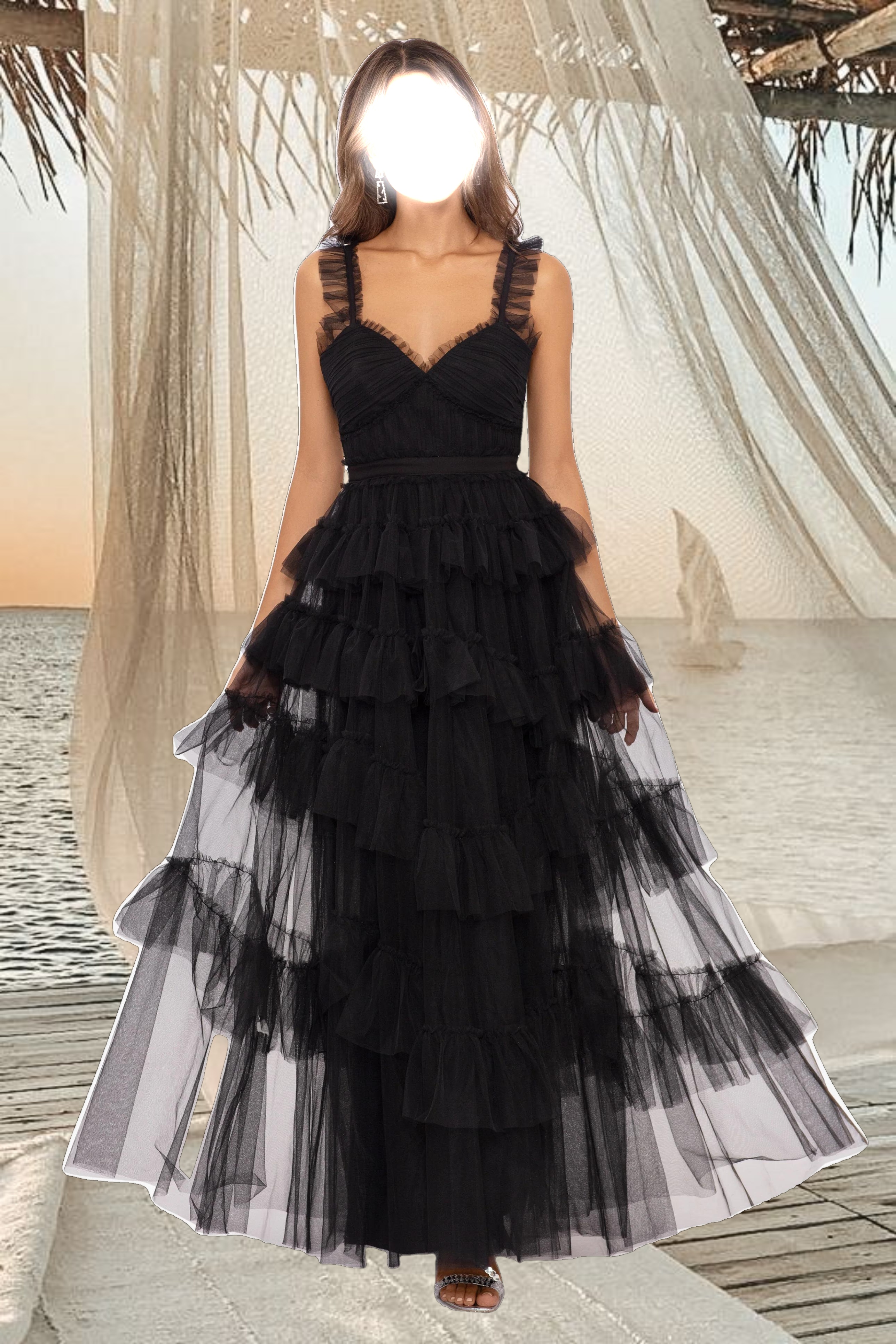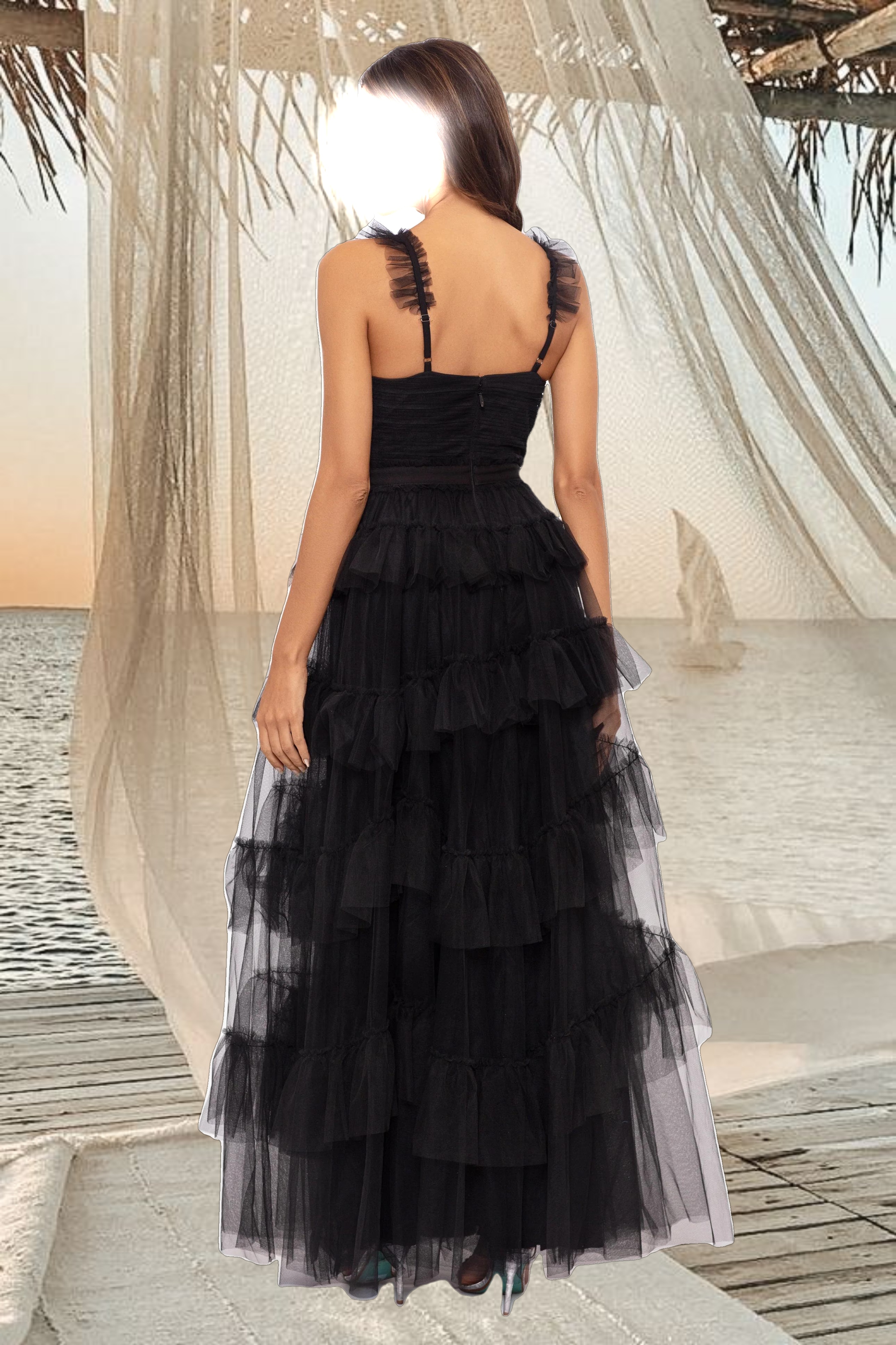 "Gigi" Long Ruffle Mesh Dress