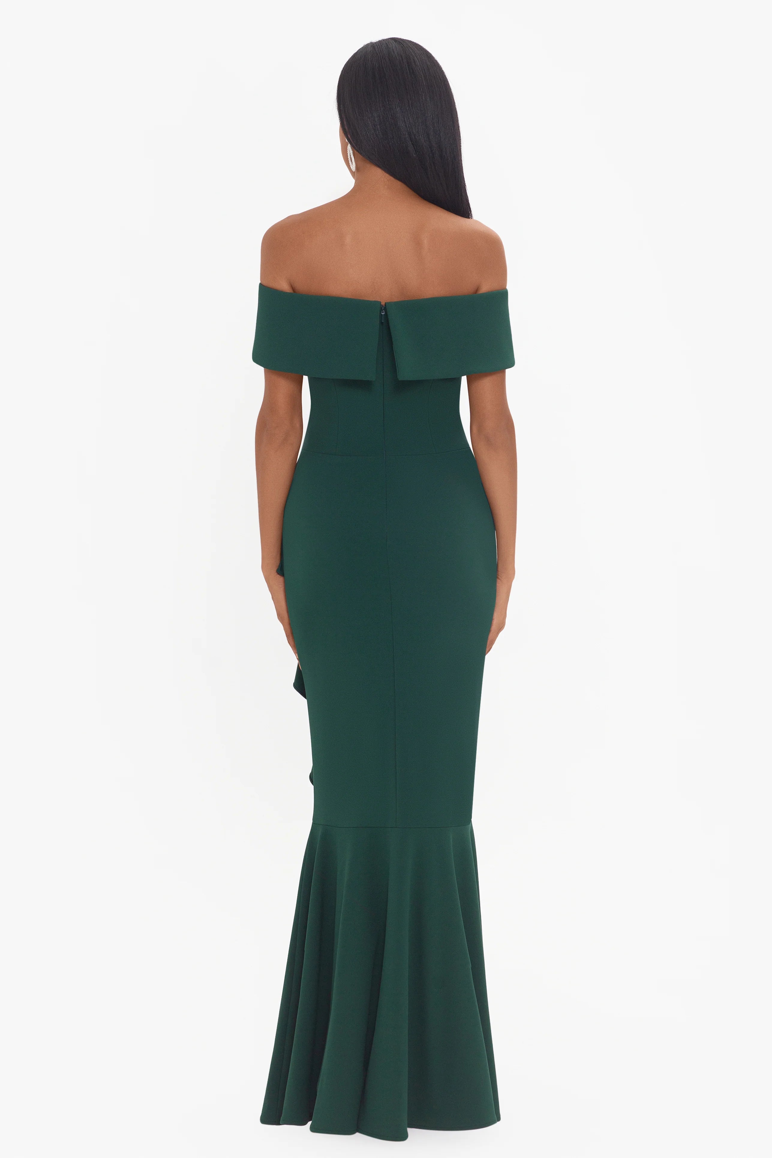 Dazzle in the 'Carina' Long Off the Shoulder Ruffle Dress. This stunning gown combines elegance with a touch of romance, featuring a flattering off-the-shoulder neckline and graceful ruffle detailing. The long silhouette adds a sense of sophistication, making it an ideal choice for formal events, galas, or special occasions. Embrace timeless style and feminine charm with the 'Carina' dress, designed to make a lasting impression. Elevate your look with this chic and graceful off-the-shoulder ensemble that effortlessly captures attention and turns heads.