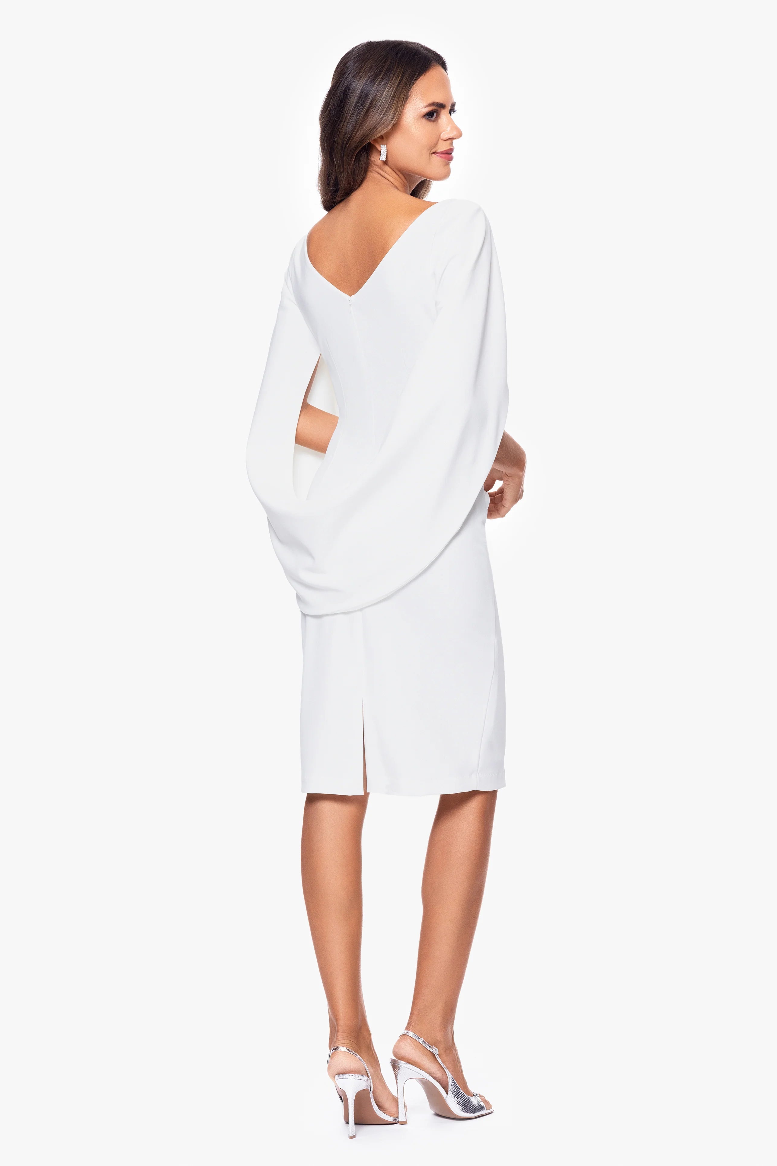 Take a risk with our Petite "Jordan" Short Scuba Crape Dress! Made with luxurious Scuba Crepe and fully lined for ultimate comfort. With a hidden back zipper, effortless elegance is achieved. Featuring draped sleeves, ruched details, and a knee length for a bold and daring look.